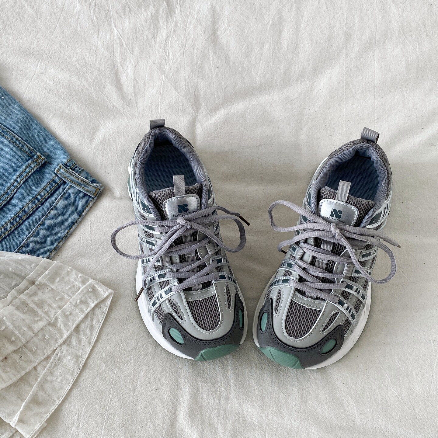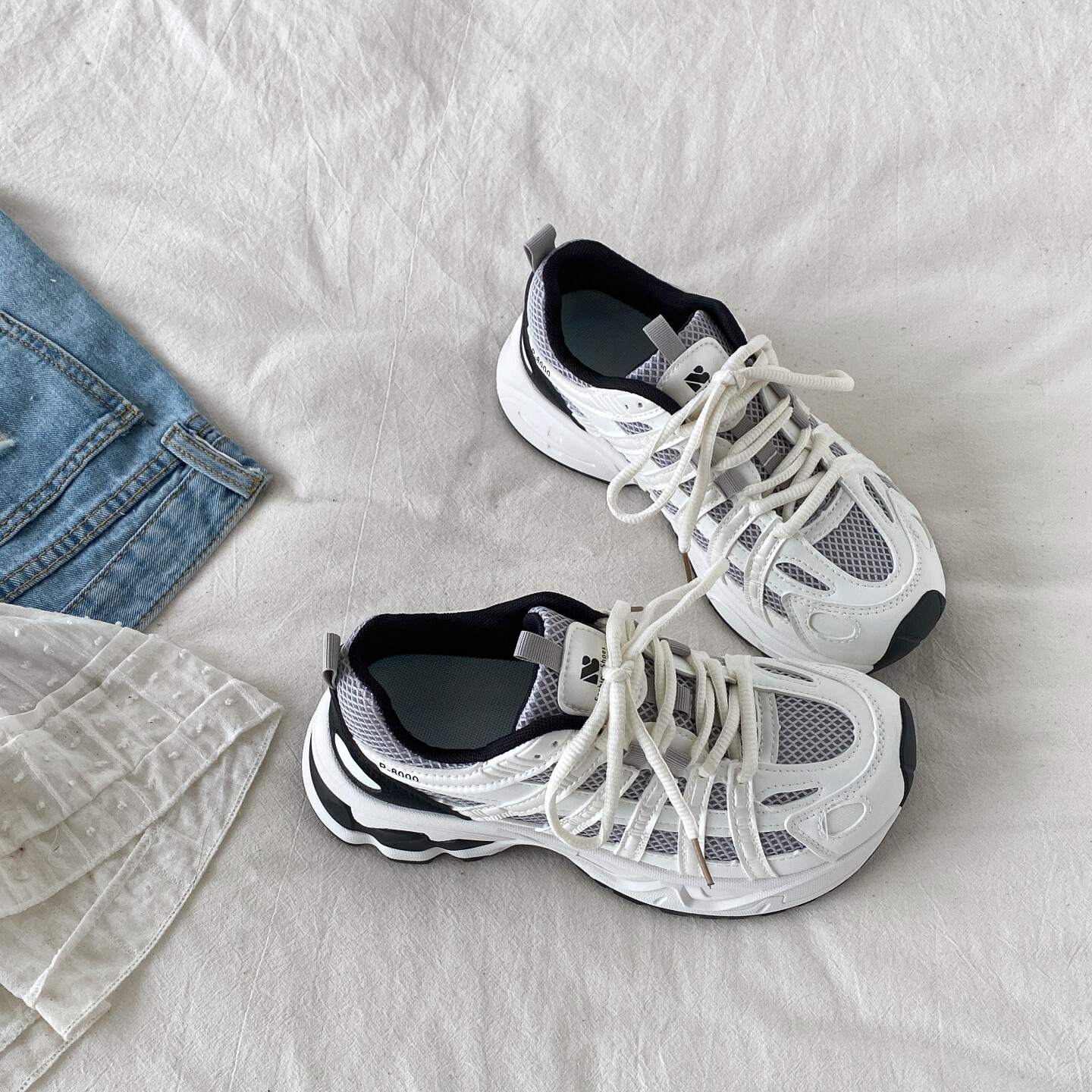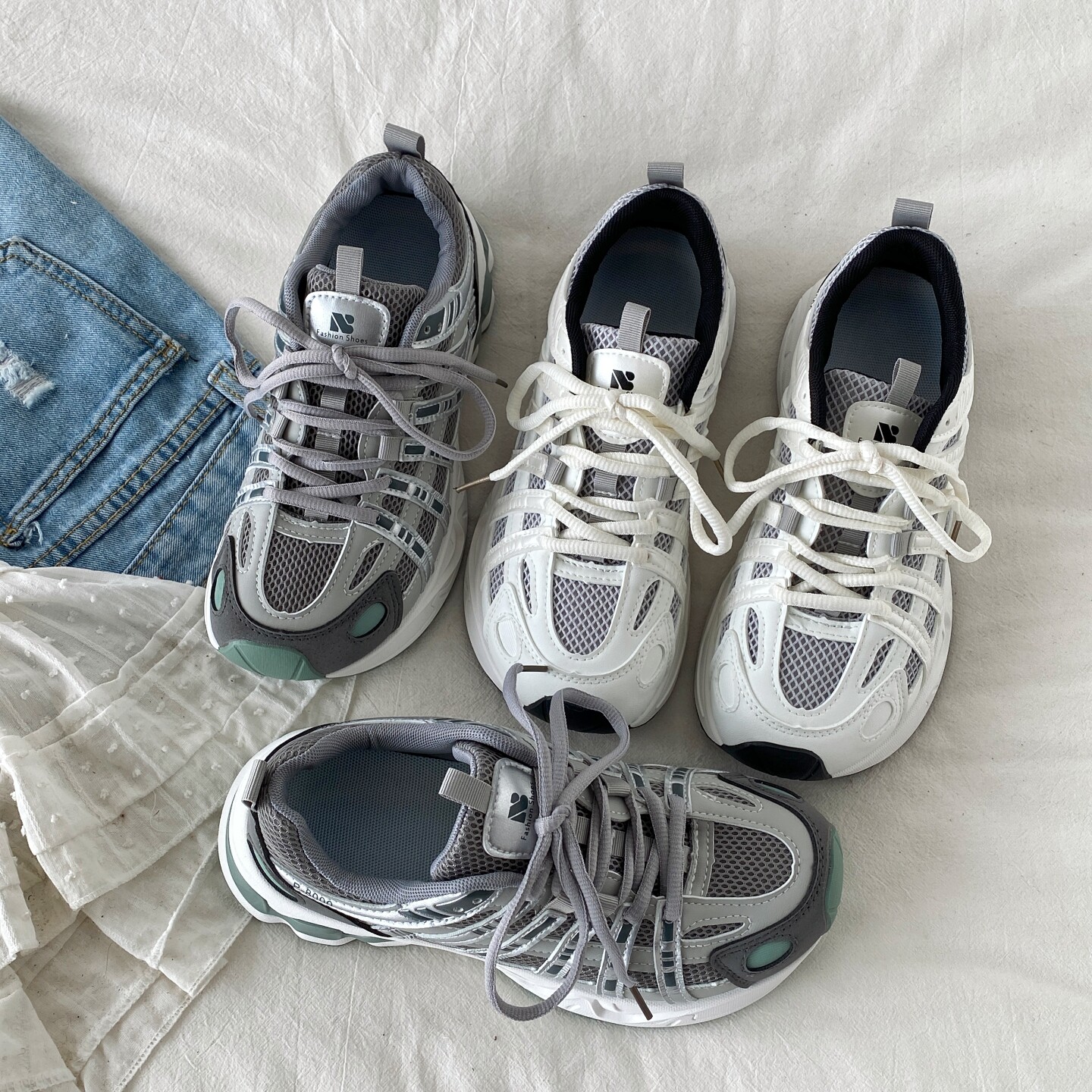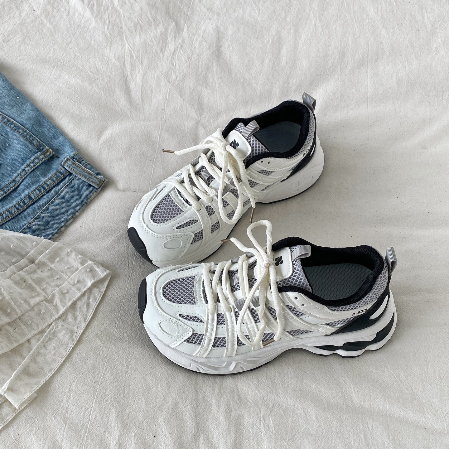 喜叔 轻便透气休闲运动鞋女款ins潮厚底网面老爹鞋复古户外跑步鞋
