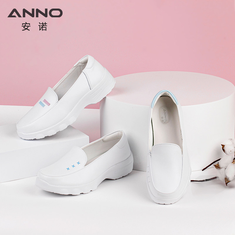 安诺护士鞋女软底透气防臭防滑轻便不累脚真皮医护鞋