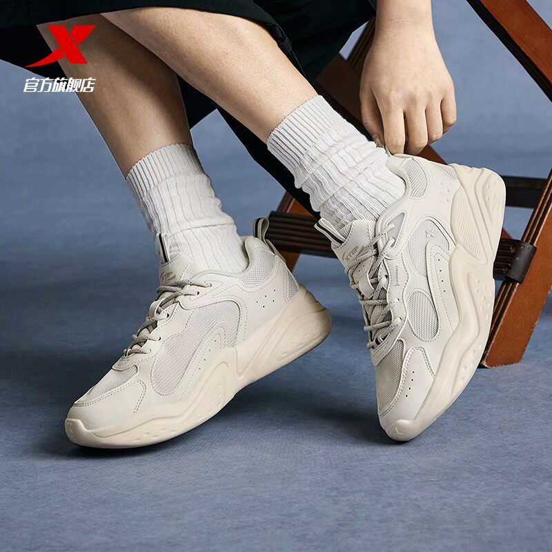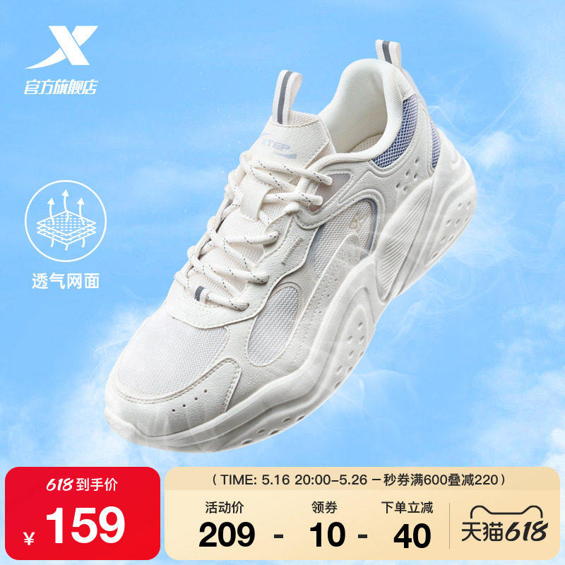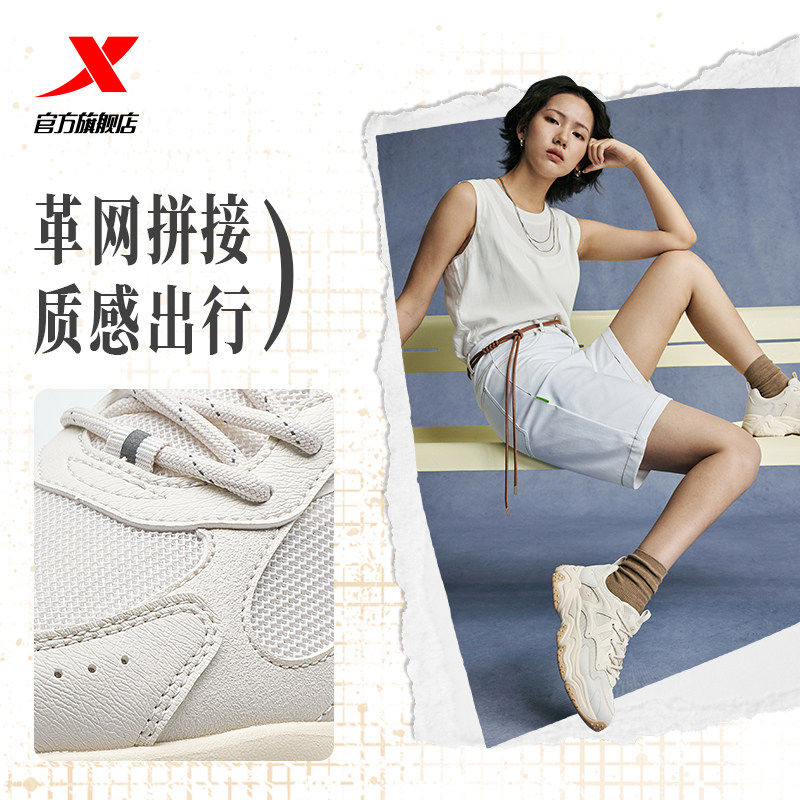 特步漫夏休闲鞋女鞋夏季百搭轻便复古网面透气轻便运动鞋老爹鞋男