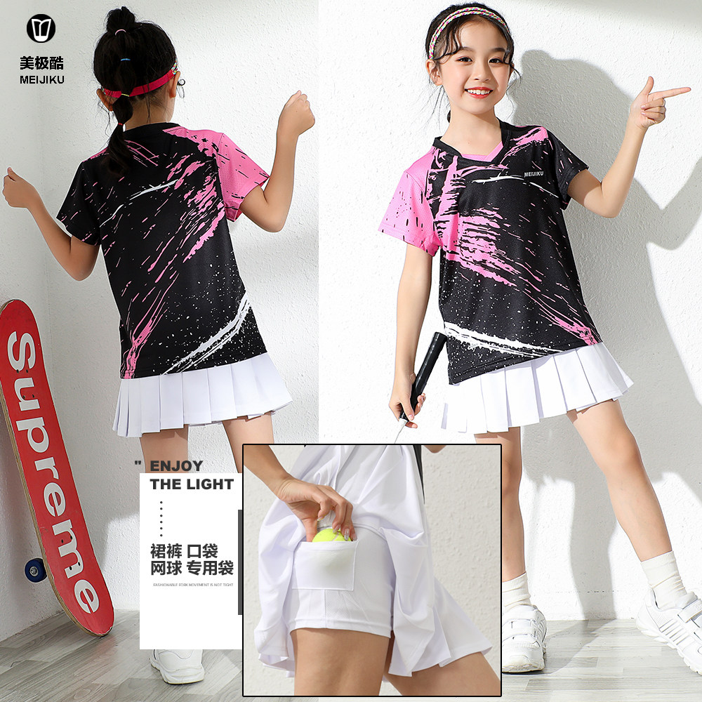 新款特价团购学生乒乓网球男女儿童运动裙上衣羽毛球服短袖套装夏