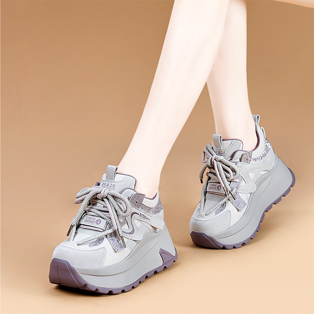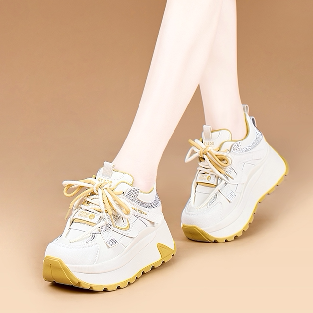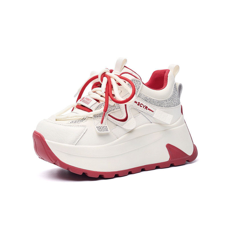 真皮内增高小白鞋女2026春季新款厚底阿甘鞋运动休闲拼色老爹鞋