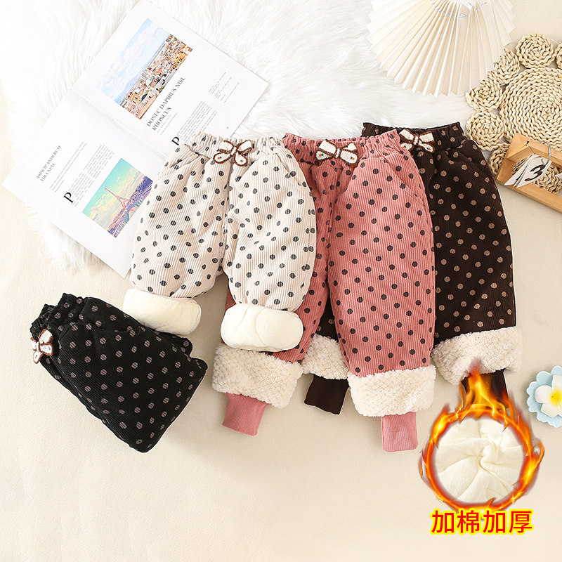 女童加绒加棉长裤外穿女宝宝一条过冬棉裤小女孩冬季三层加厚裤子