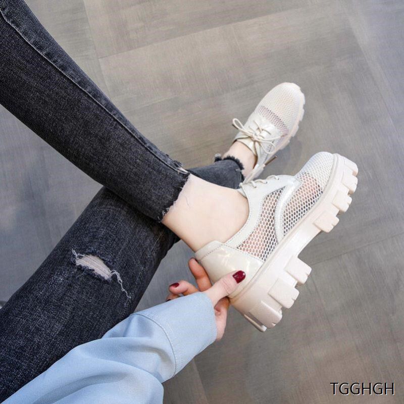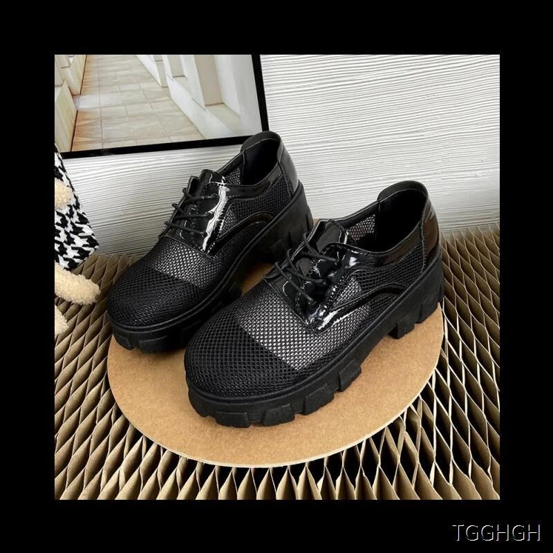 夏天网面透气女鞋超高厚底鞋网鞋女士靴子休闲鞋黑色软底软面皮鞋