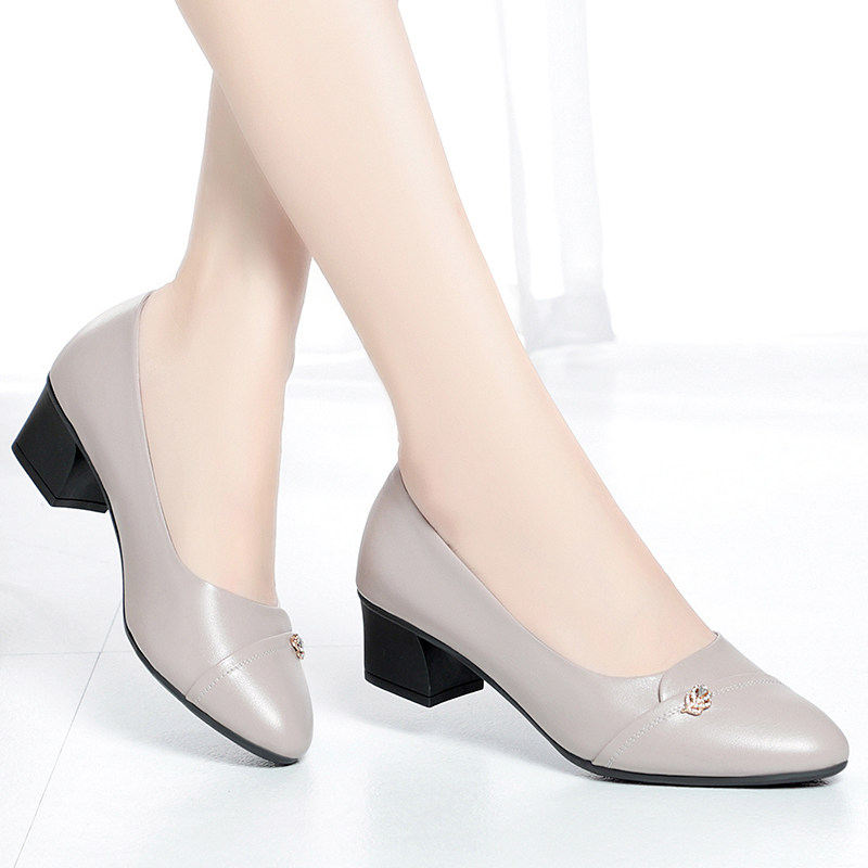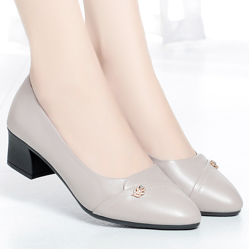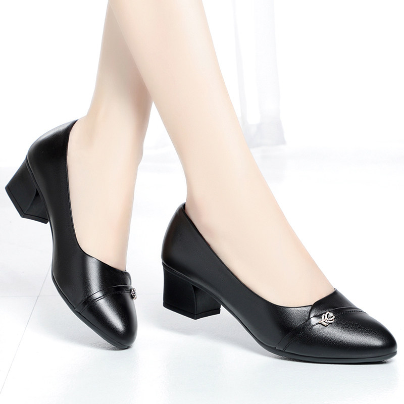 女士皮鞋真皮不累脚女鞋软底软面单鞋中跟工作鞋女黑色中年妈妈鞋