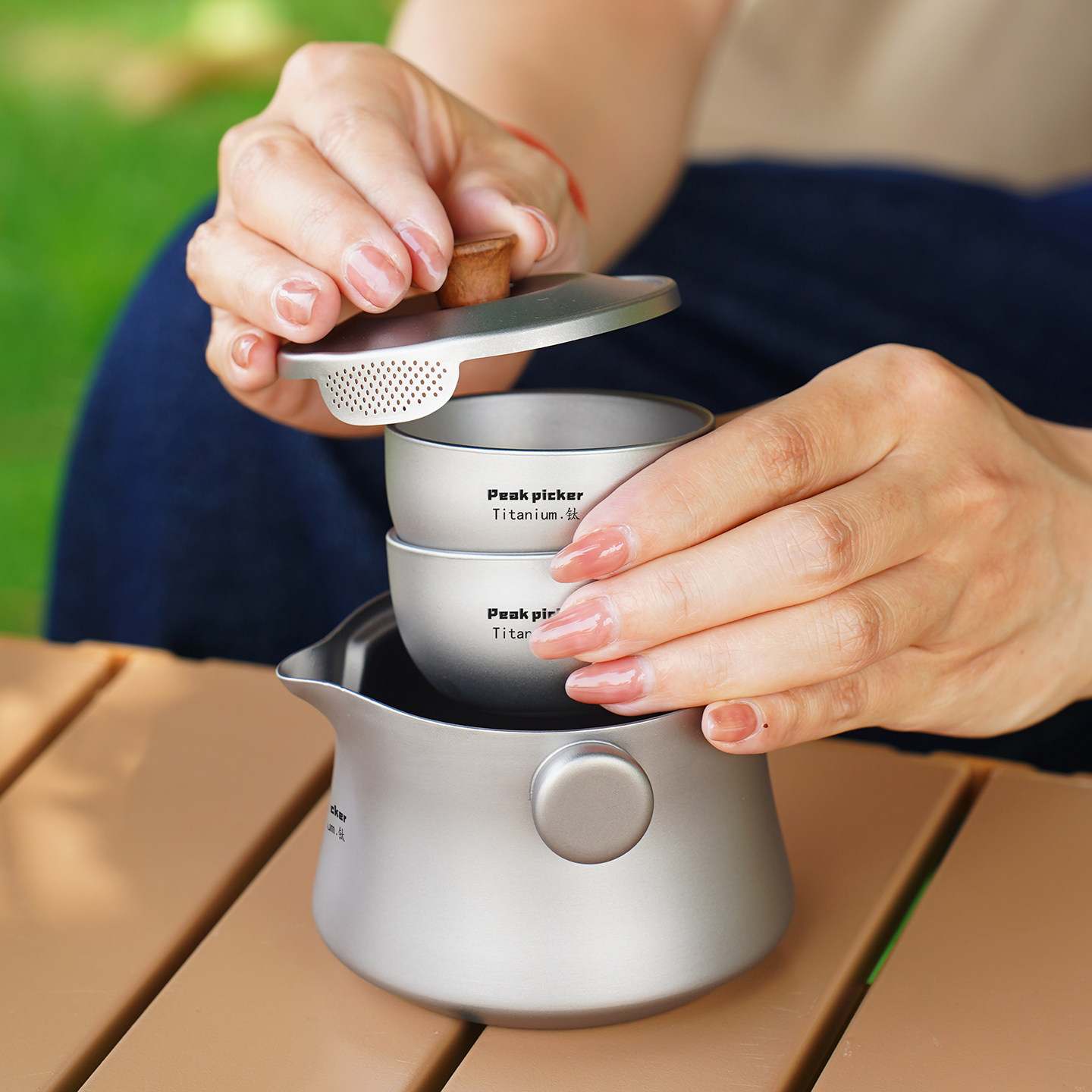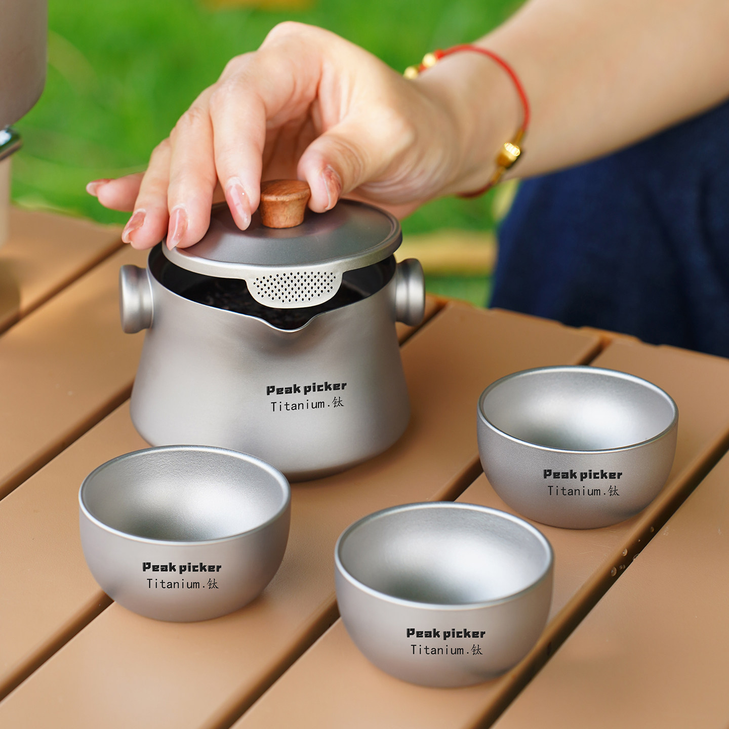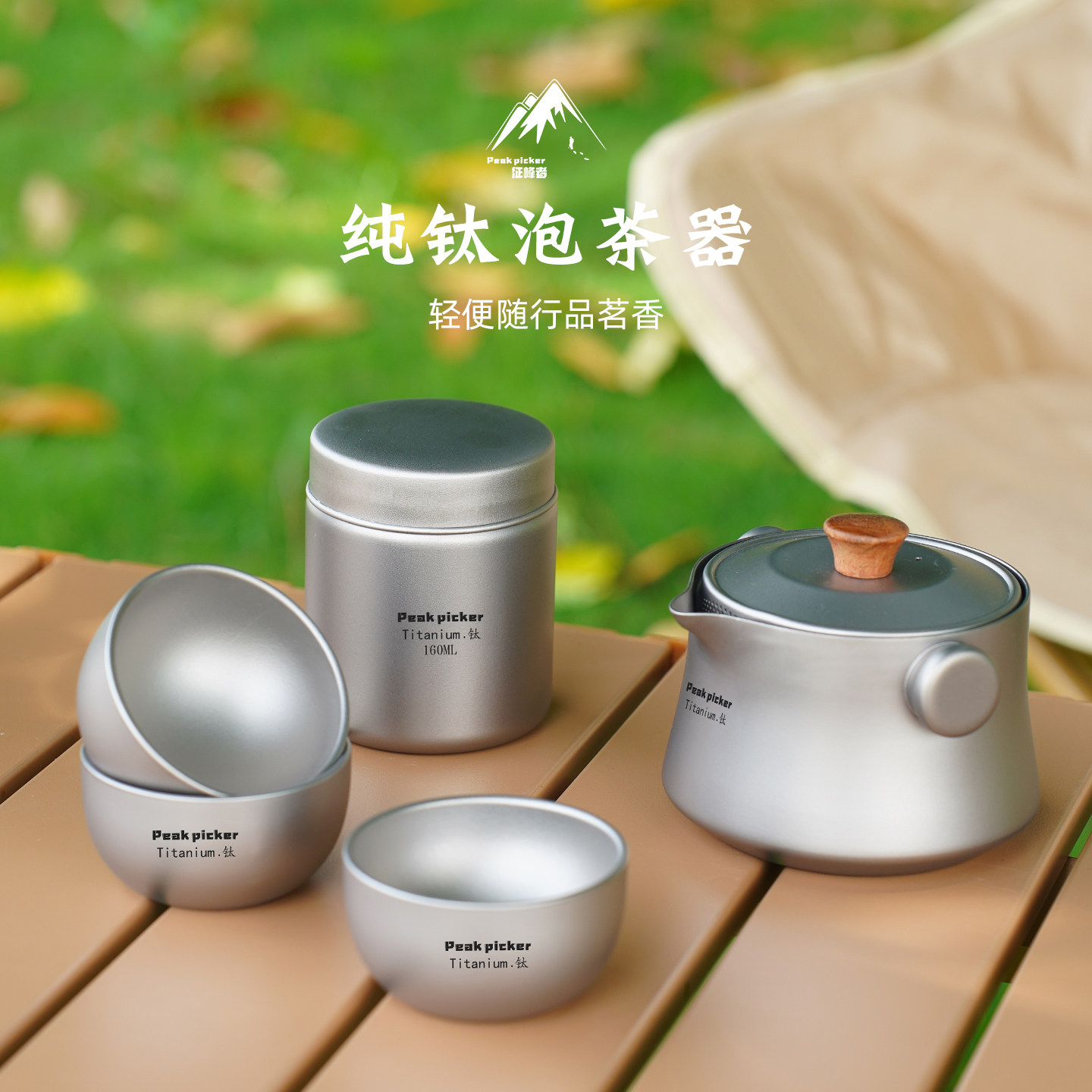 便携旅行纯钛茶具套装茶杯新款双层防烫泡茶器户外露营钛合金杯子