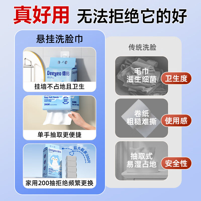 德佑悬挂绵柔巾干湿两用非棉柔巾湿纸巾新生婴儿专用一次性洗脸巾