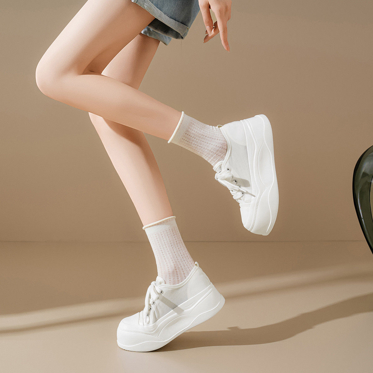 舒适厚底软底女士休闲鞋时尚个性透气网纱圆头轻便板鞋增高显瘦