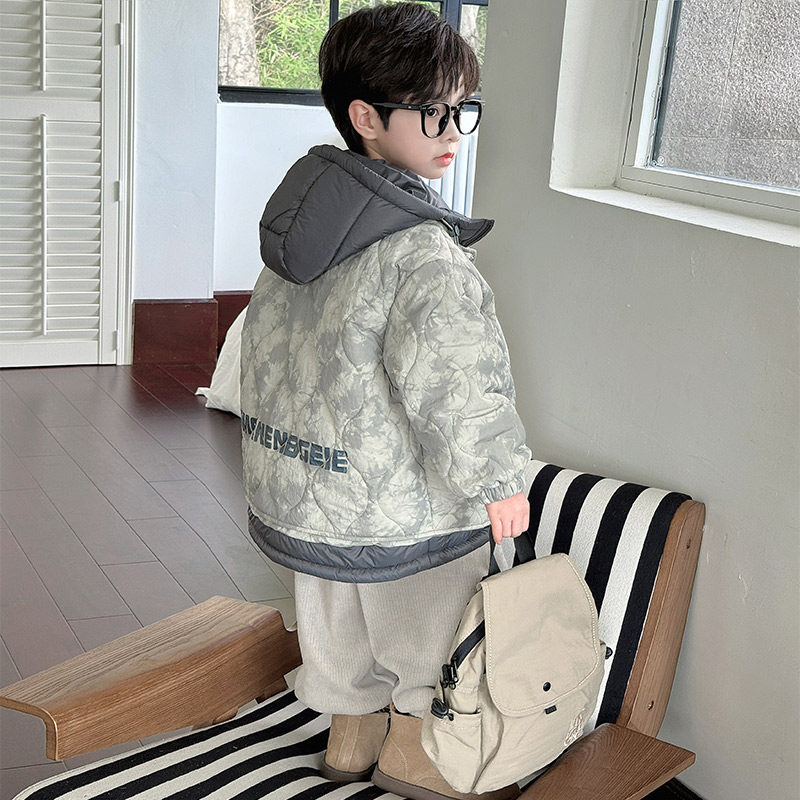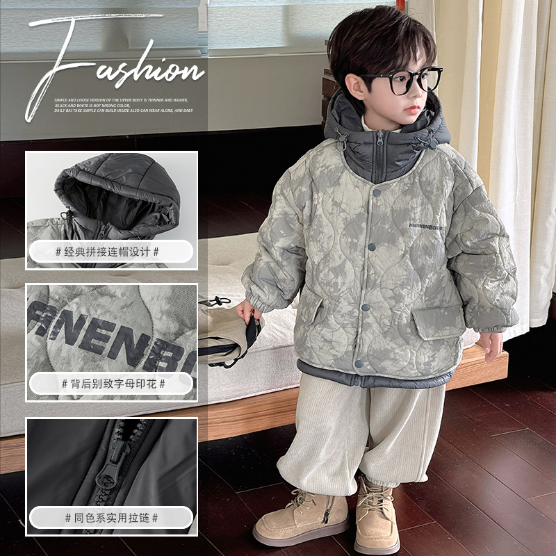 男童冬装外套2026新款儿童秋冬款加厚连帽棉服男孩冬季保暖棉衣潮