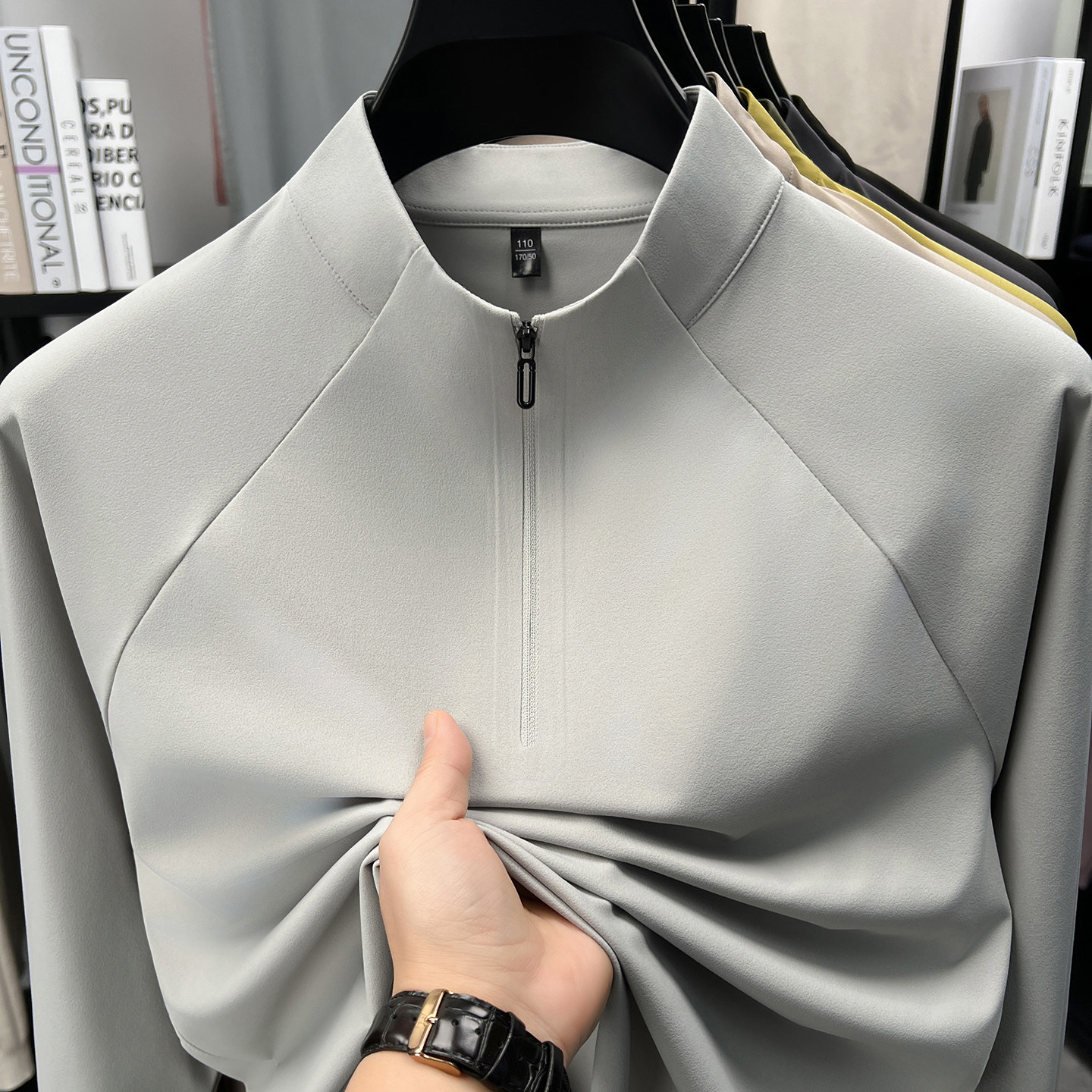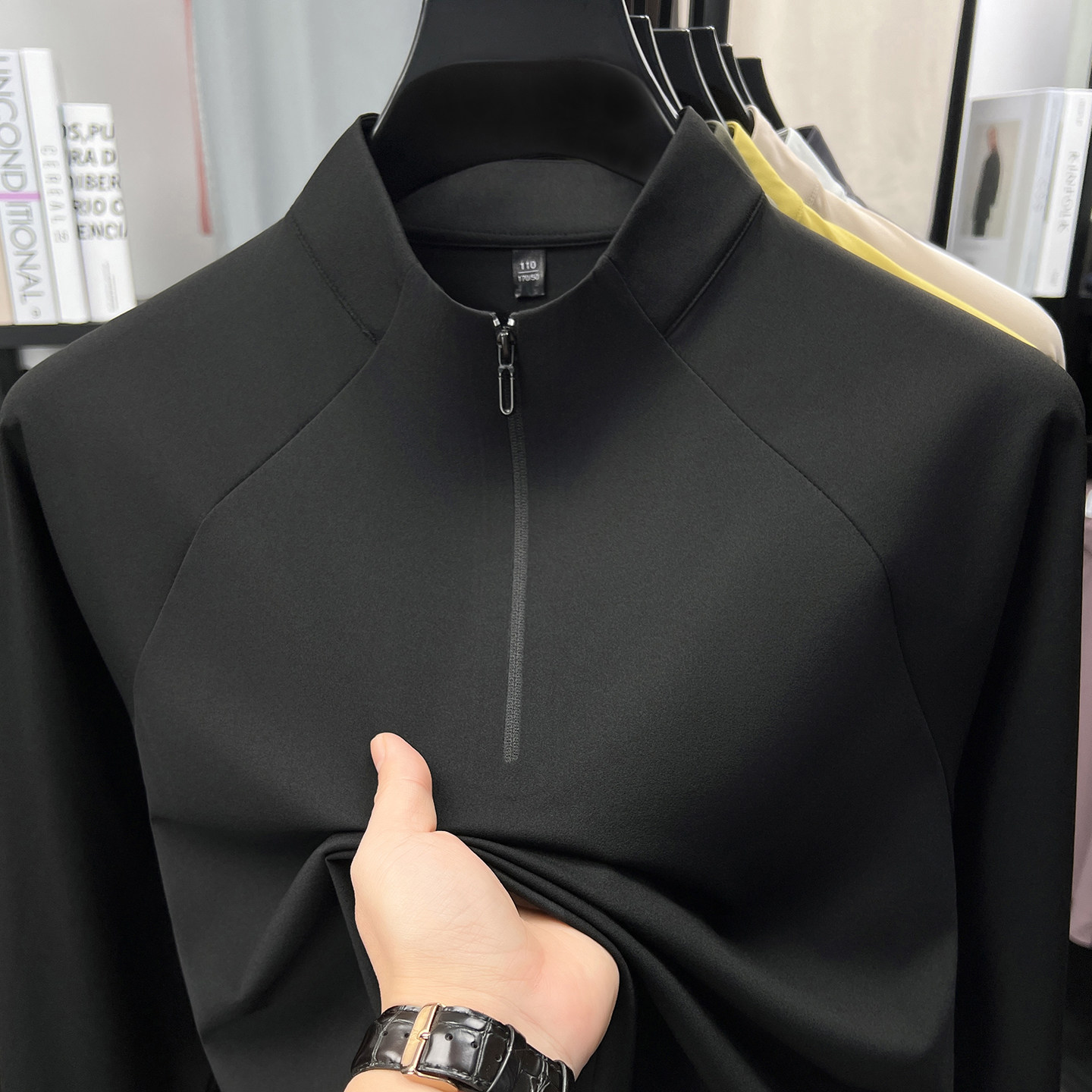 半高领拉链高弹卫衣男款春秋2026新款男士长袖t恤运动薄款打底衫