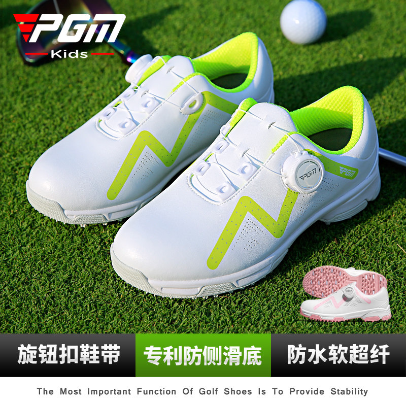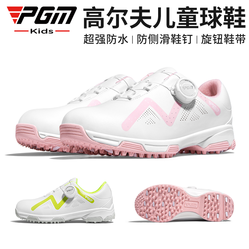 311线报网描述:高尔夫男女童鞋子 旋钮鞋带 防水 防滑鞋钉
