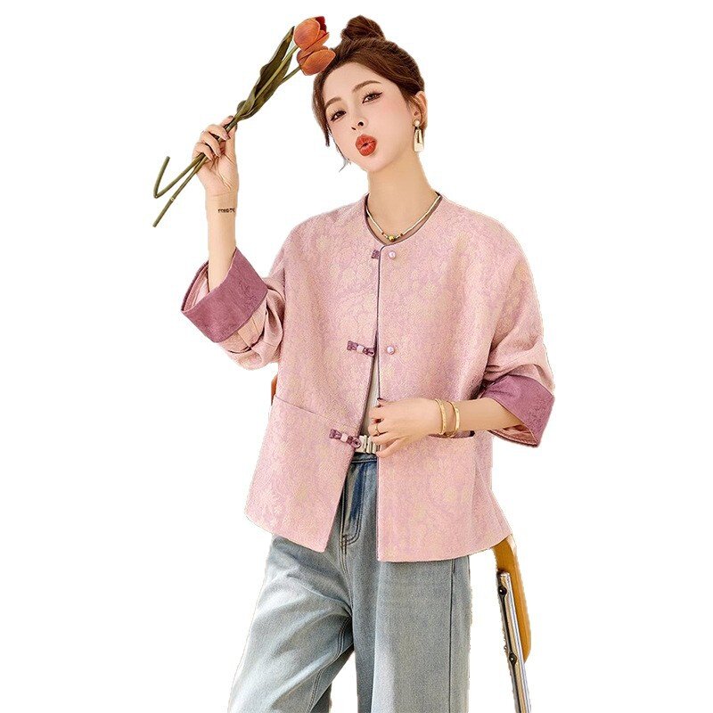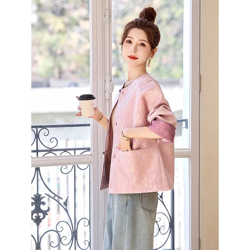 新中式国风提花短外套女2026春装新款高级感气质唐装轻奢圆领上衣
