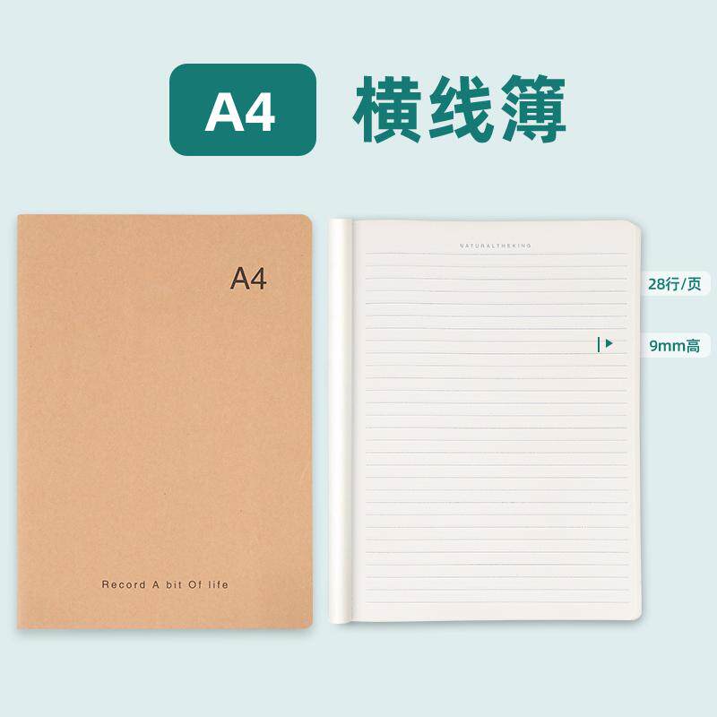 a4本子笔记本本子A4横线牛皮作业本英语加厚a4大号本横线软皮本子