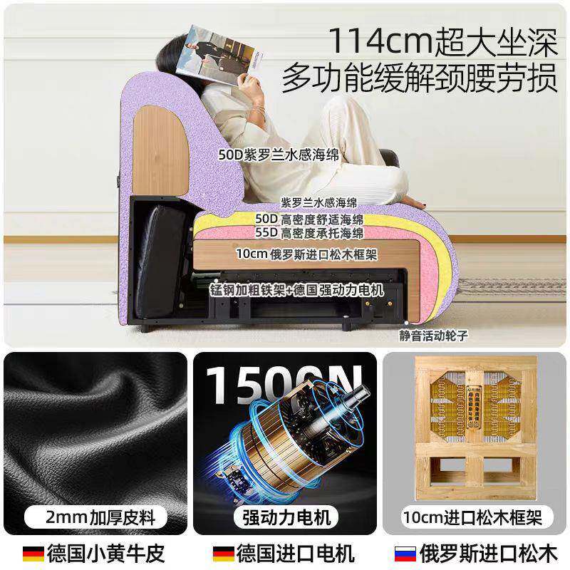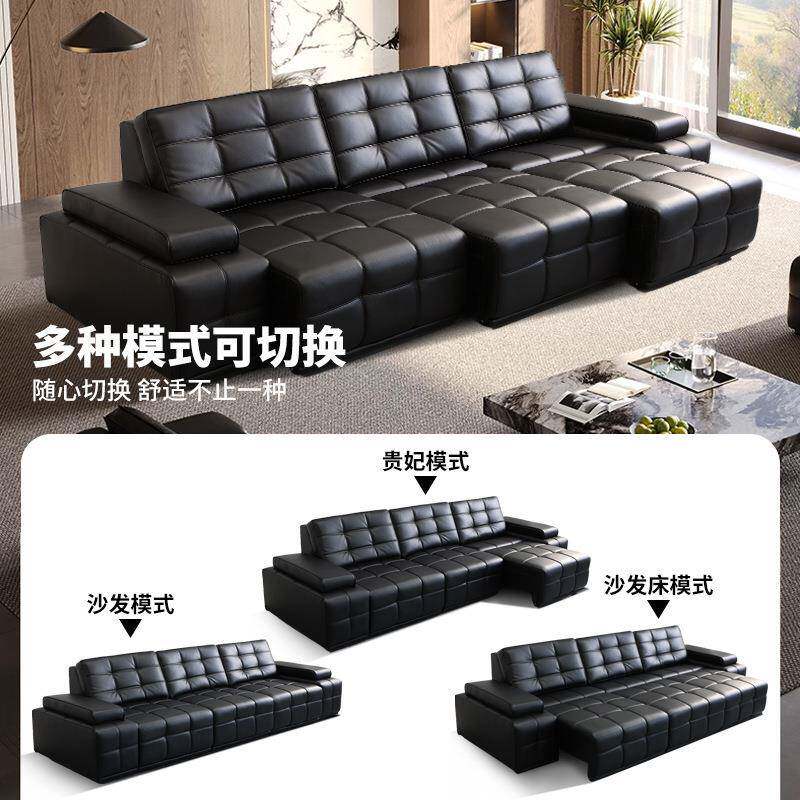 劳伦斯真皮电动沙发床平推款多功能客厅直排三人位可伸缩一体两用