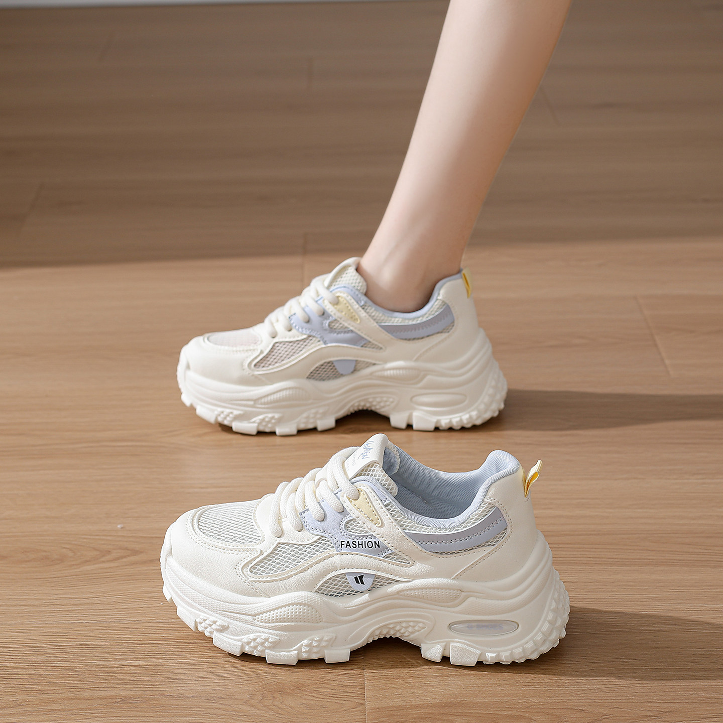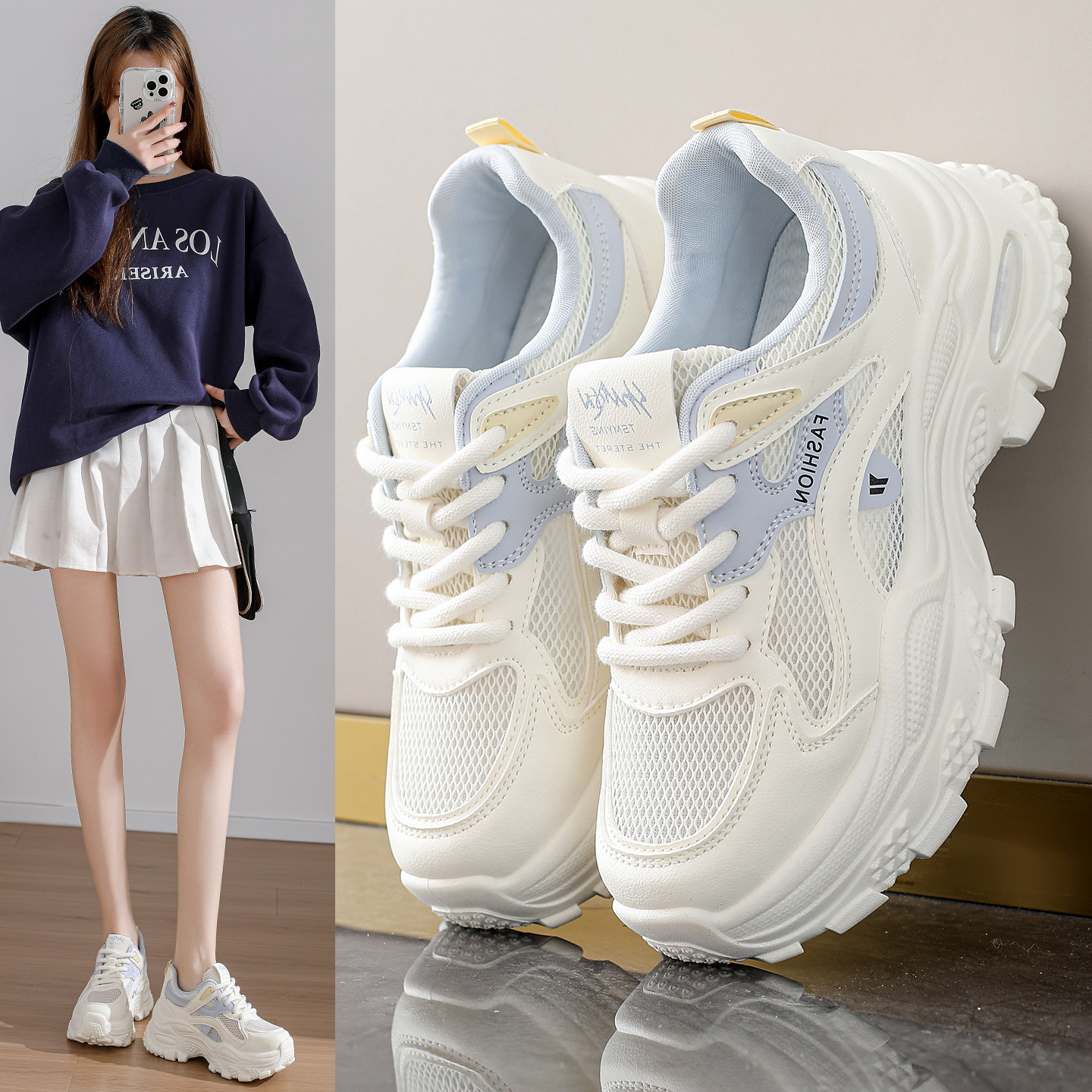 踩屎感单网老爹鞋女款2026夏季新款小个子厚底增高镂空透气运动鞋