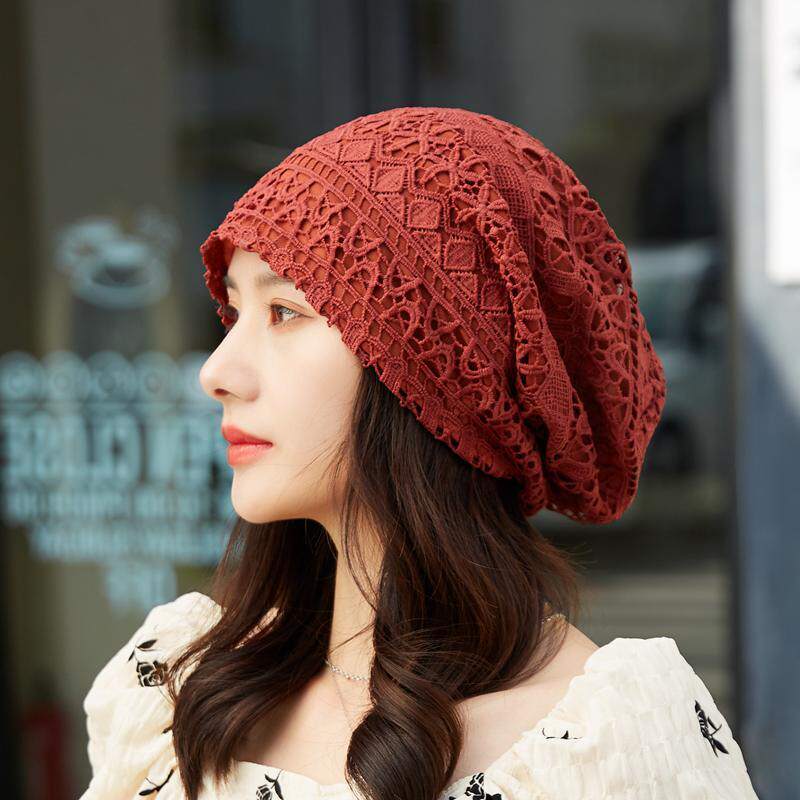 帽子女薄款镂空蕾丝钩花头巾帽透气网眼帽春夏空调睡帽防尘堆堆帽
