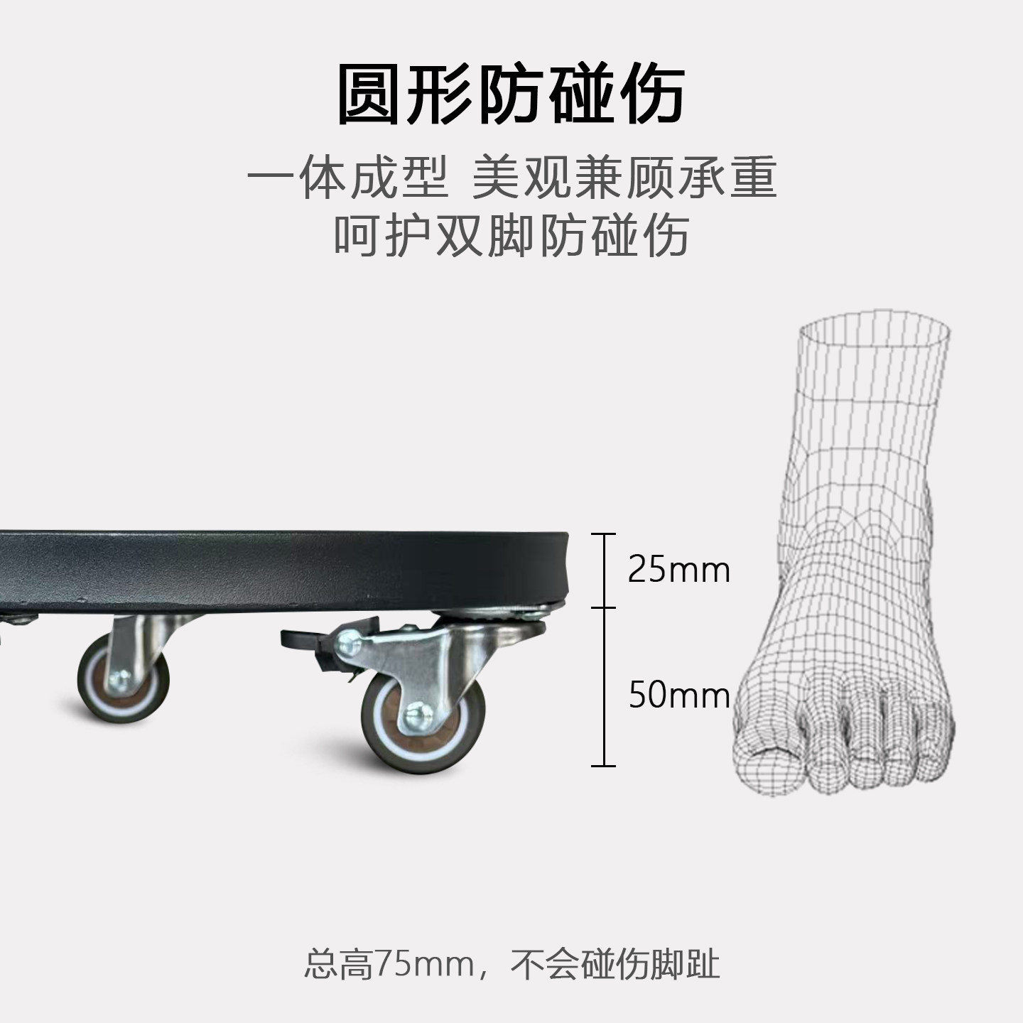 圆形万向轮移动花盆底座托盘带轮大承重滚轮底托滑轮花盆架透气