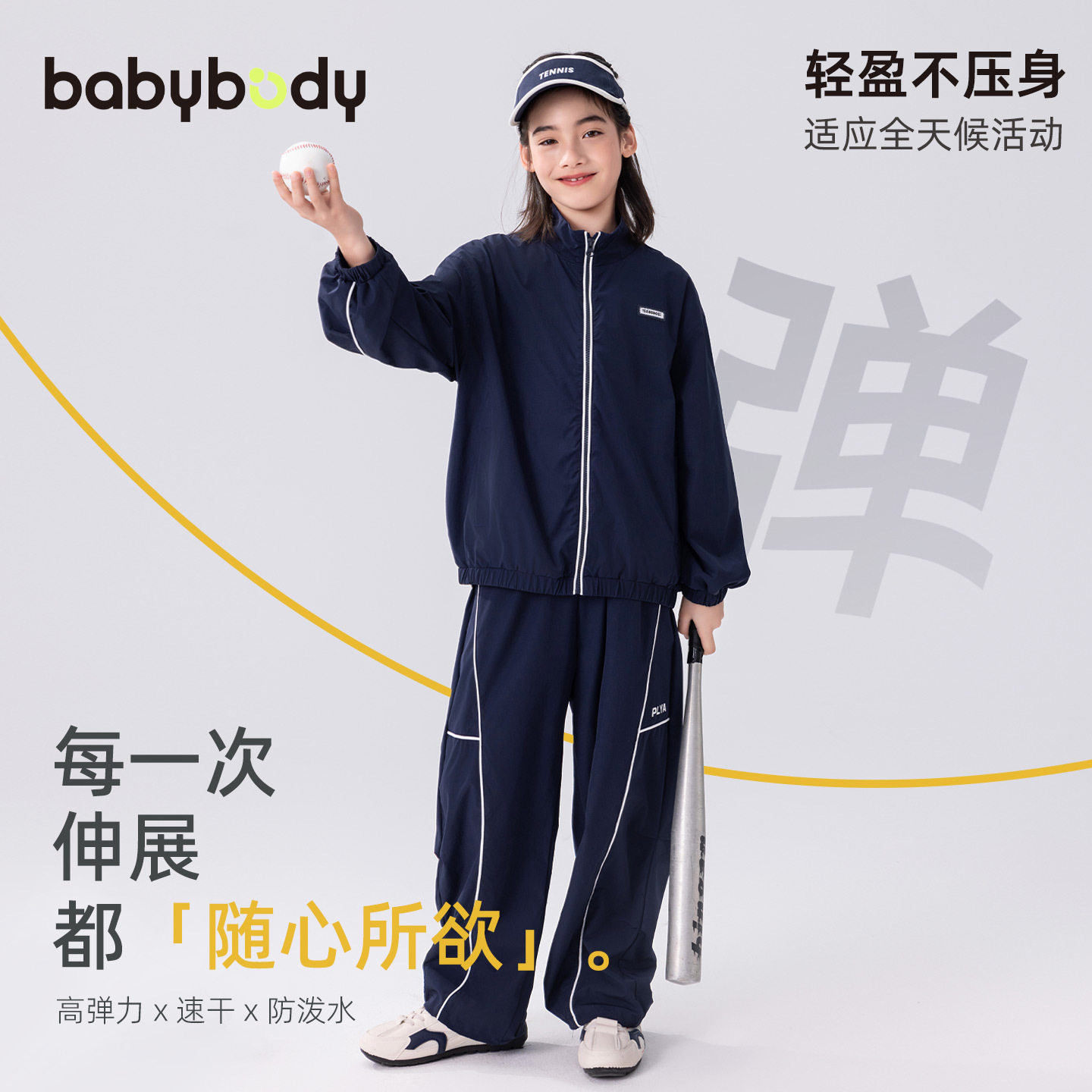 babybody童装儿童运动套装2026春季新款男童女童速干户外外套裤子