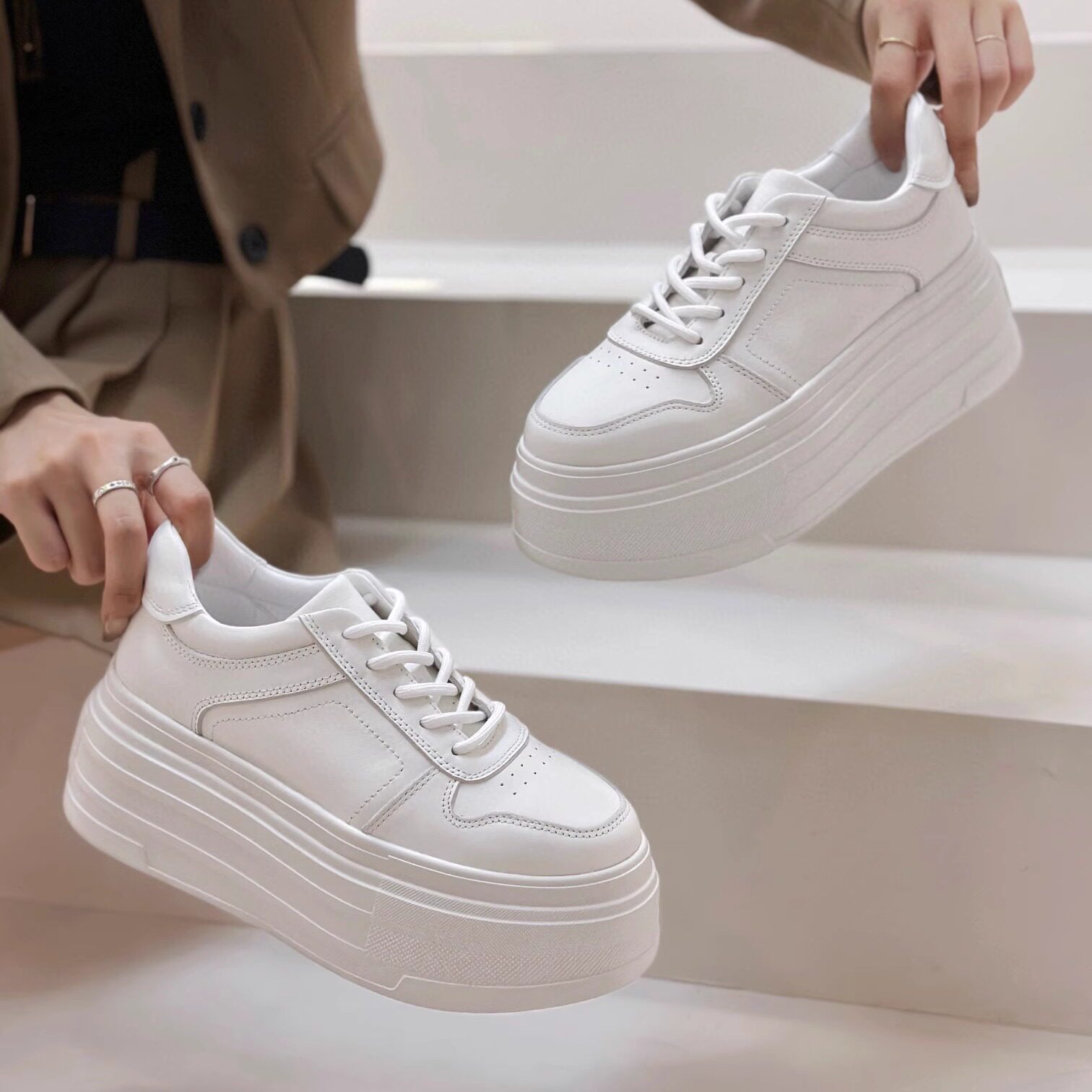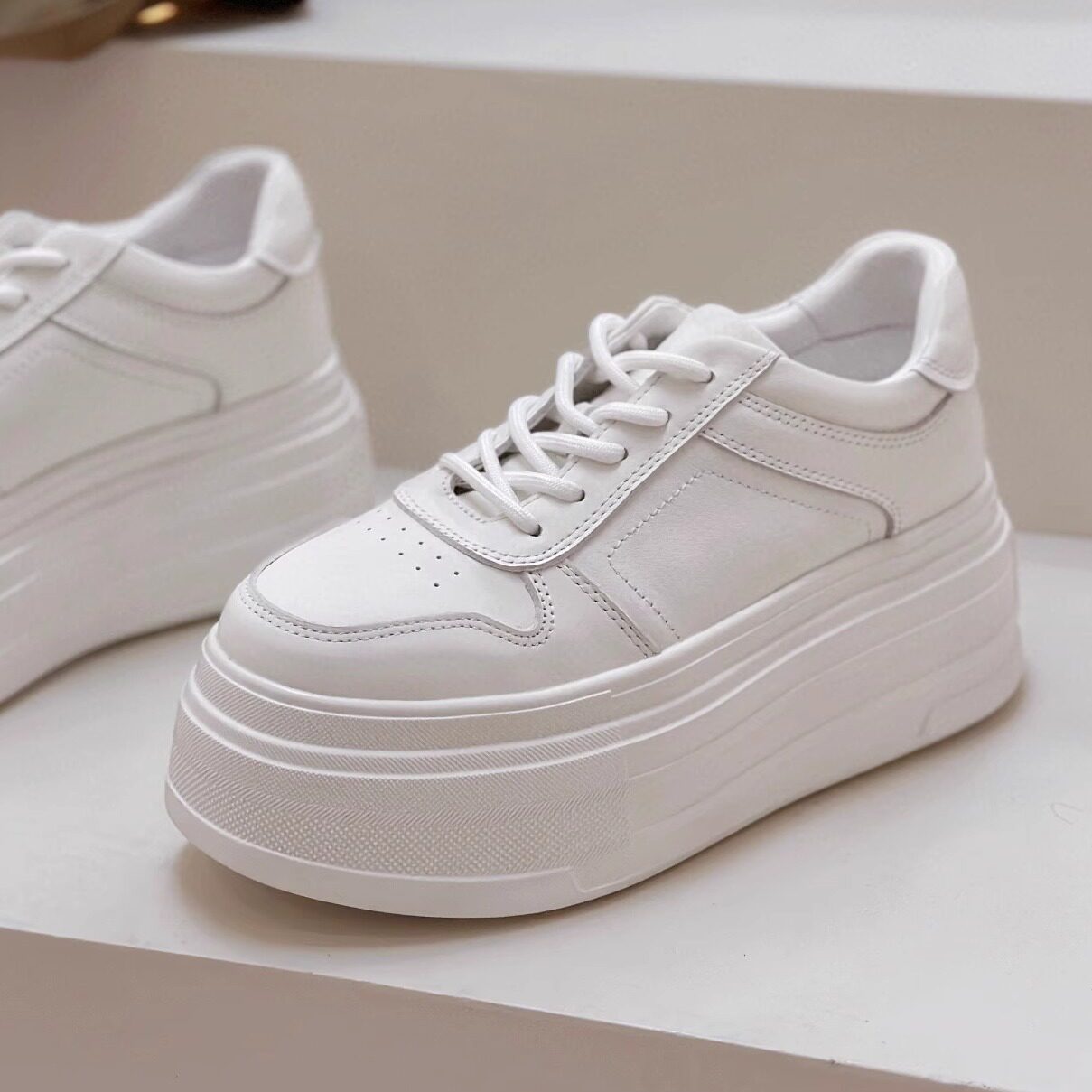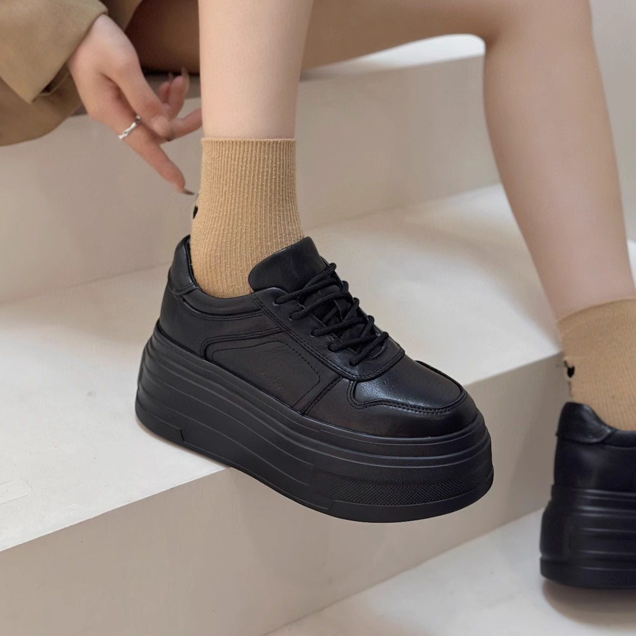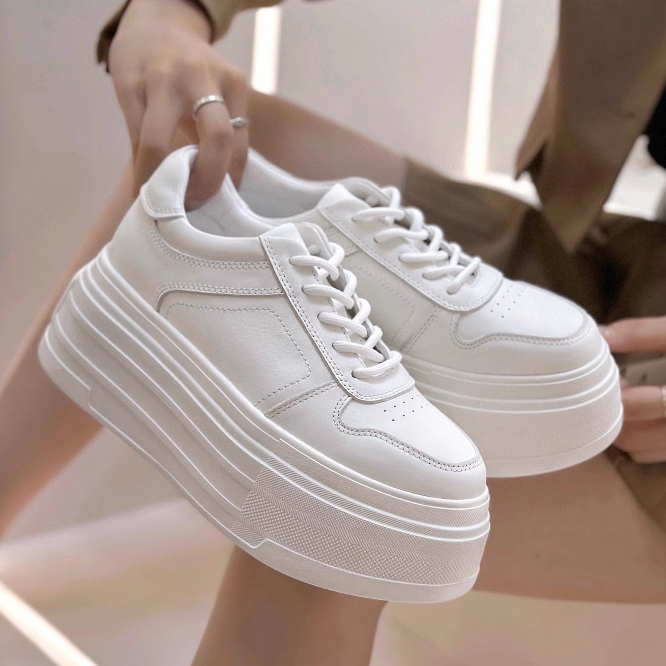 真皮内增高8-10cm厚底轻便2026新款女款小个子百搭全黑松糕小白鞋