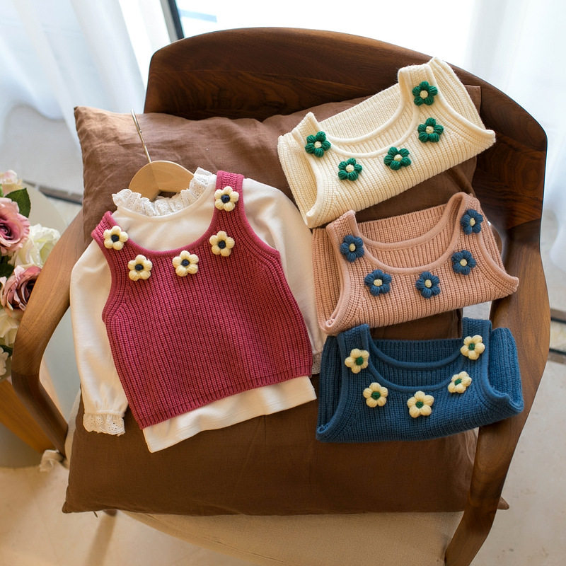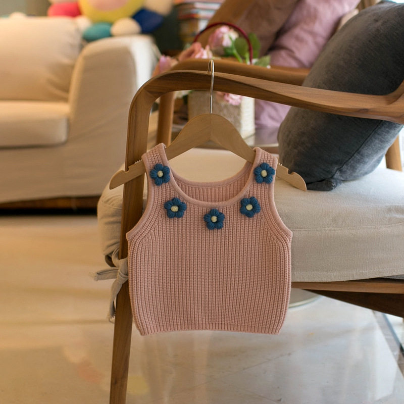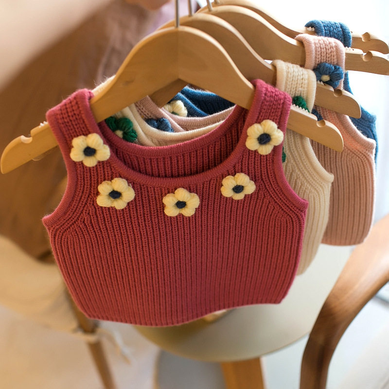 女童针织背心小童坎肩宝宝高腰叠穿马夹上衣婴儿毛衣儿童吊带马甲