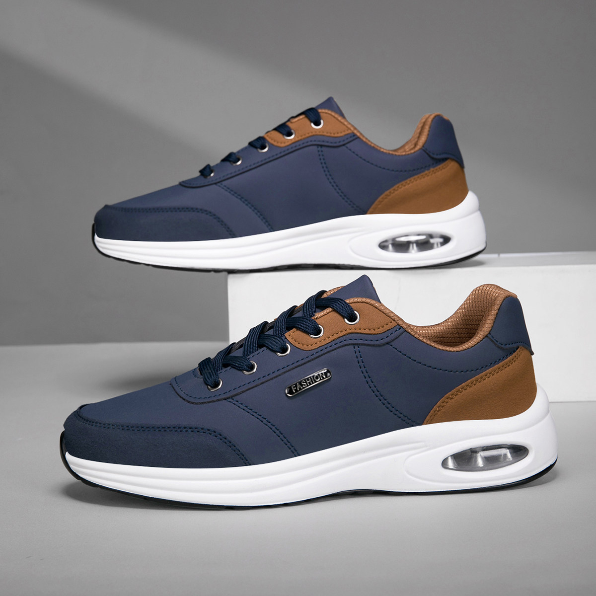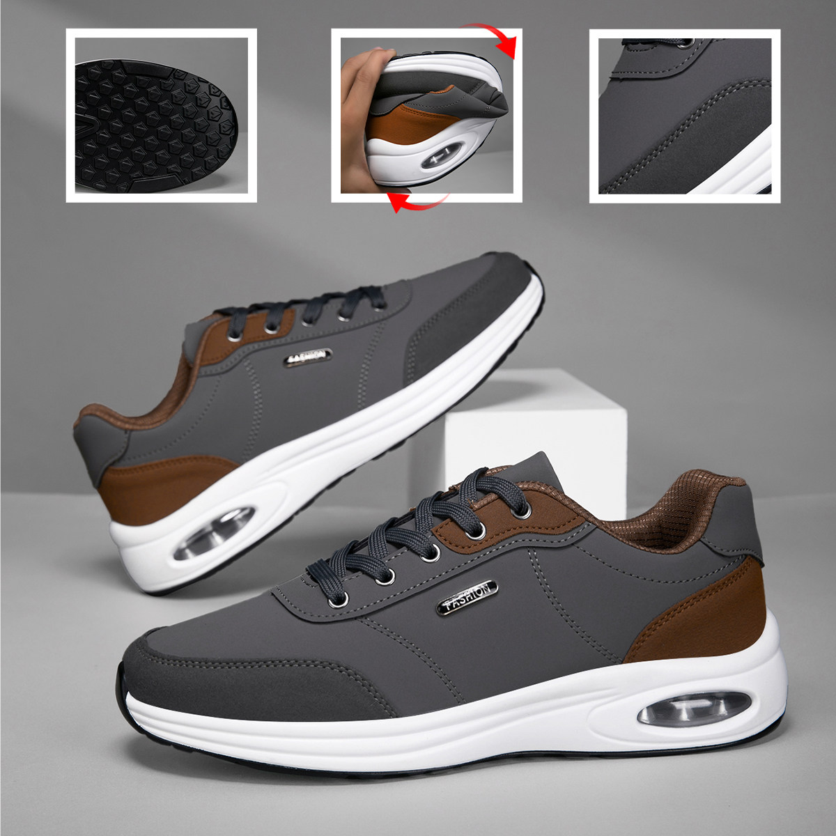 大码男鞋2026新款皮面运动鞋男士休闲气垫跑步软底旅游波鞋子男款
