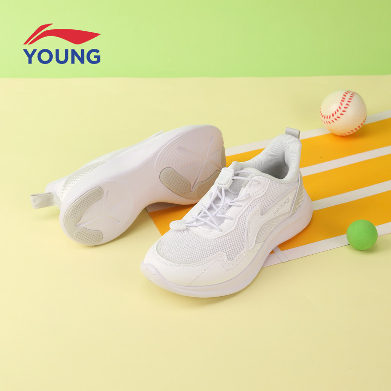 李宁童鞋小白鞋女童2024新款中大童轻便透气跑步鞋减震防滑运动鞋