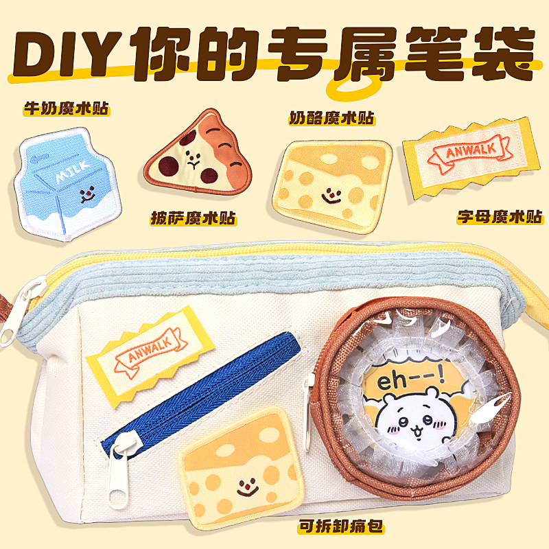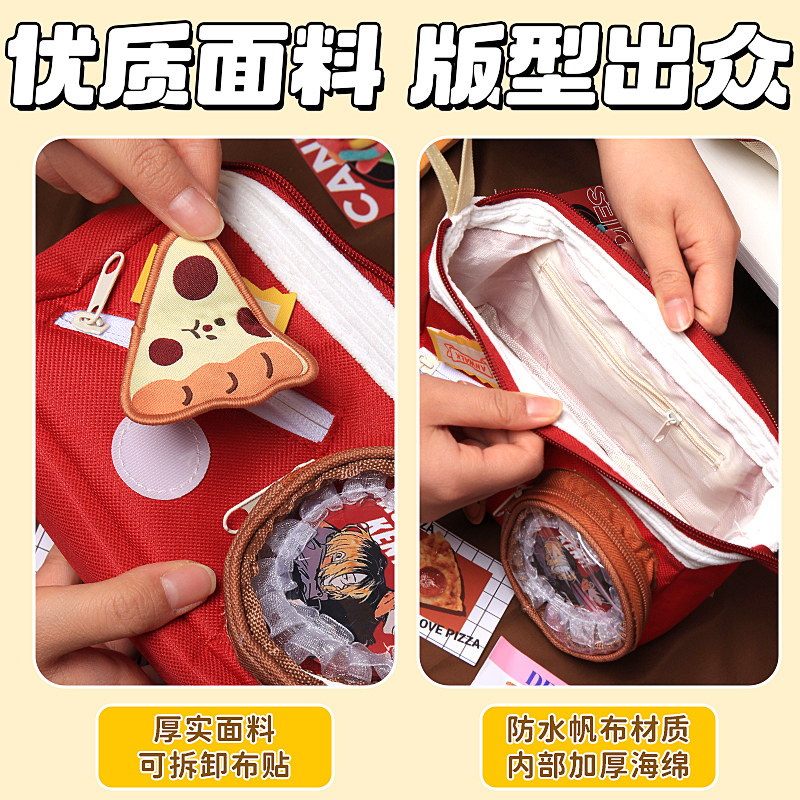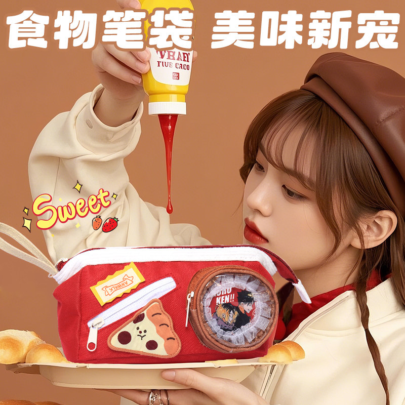 可爱食物笔袋二次元痛包2026超火女孩高颜值ins风大容量撞色拼接多层透明笔袋女生简约多功能学生文具收纳袋