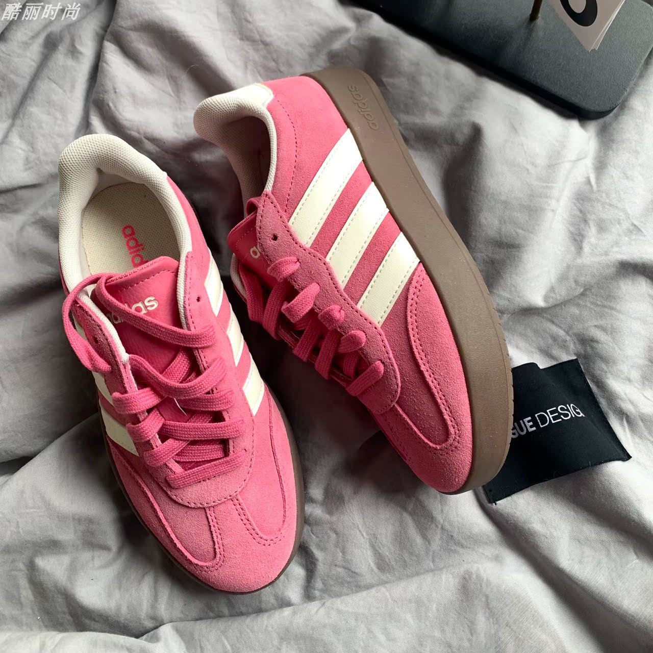 Adidas阿迪达斯德训鞋女子运动鞋男款休闲T头鞋粉白 BARREDA 板鞋
