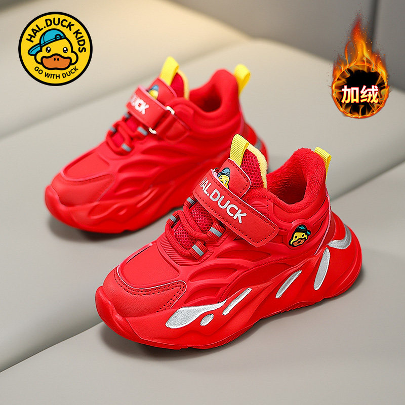 小黄鸭儿童鞋子秋冬季2025新款加绒保暖男童二棉运动鞋软底老爹鞋