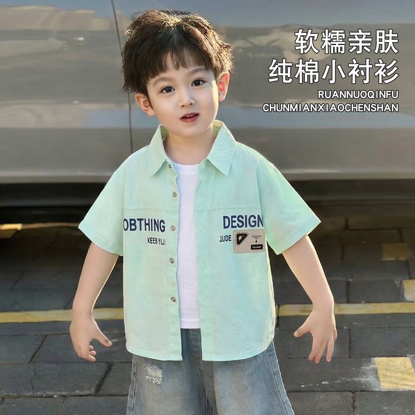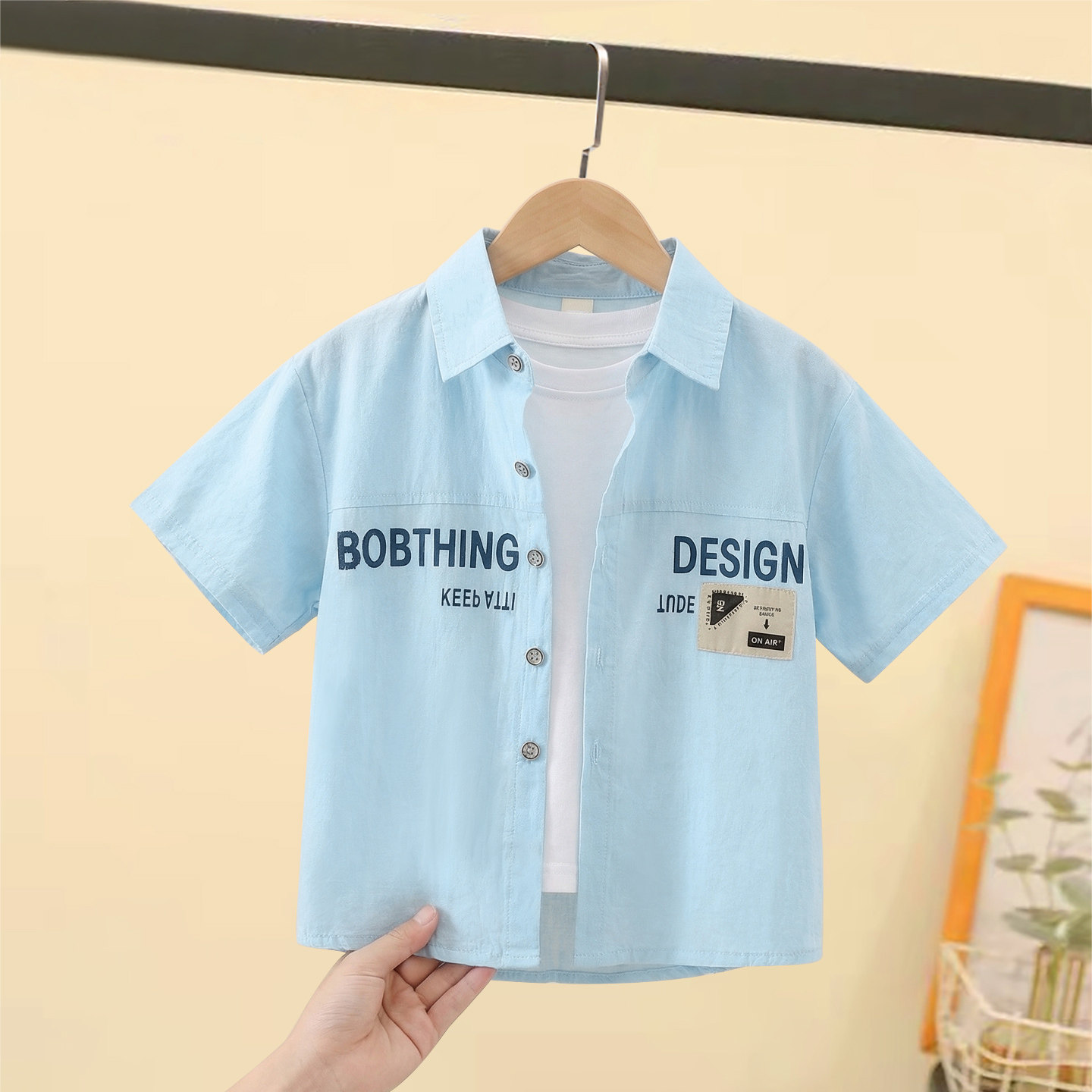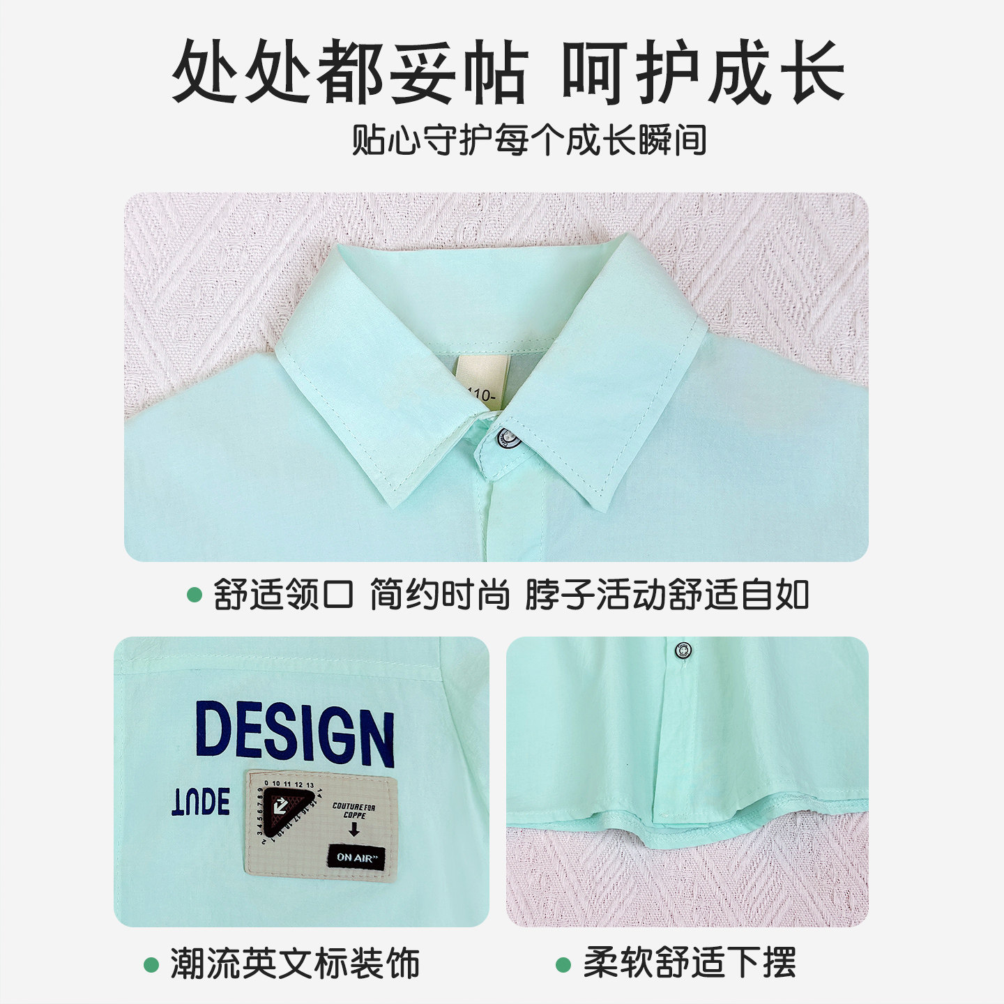 男童短袖衬衫夏款儿童纯棉上衣男孩小学生蓝色衬衣夏季宽松休闲