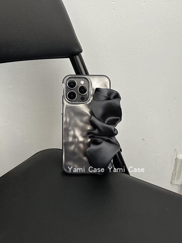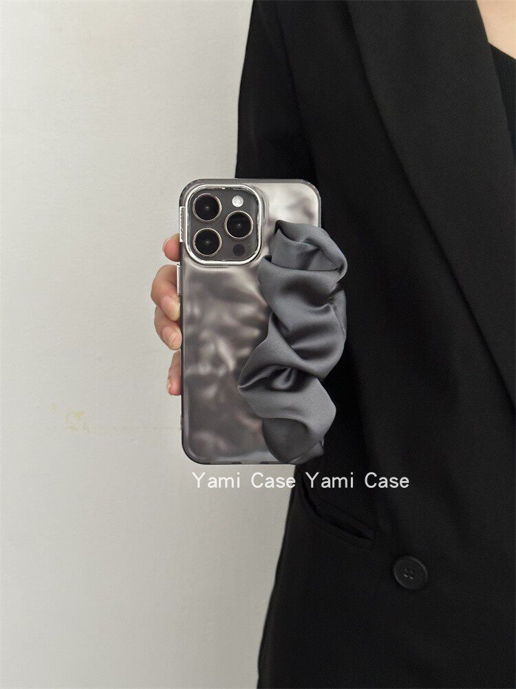 高级感小众深灰色弹力丝巾手腕带17适用13苹果15promax手机壳iphone14promax时尚防摔12pro手拎16保护套