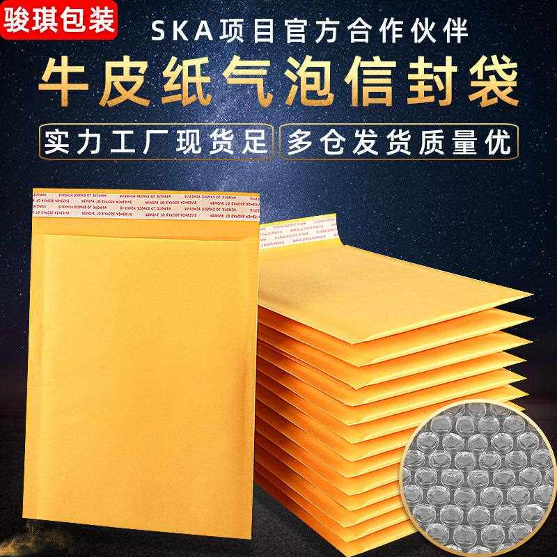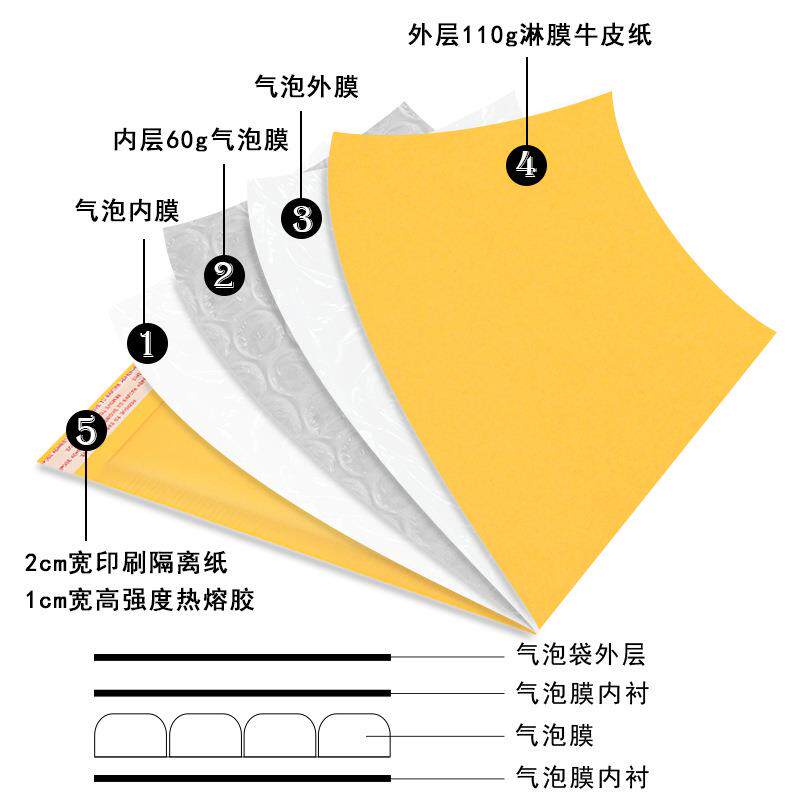 直销新款黄色牛皮纸气泡信封袋 加厚服装包装袋印刷防震泡泡袋 防