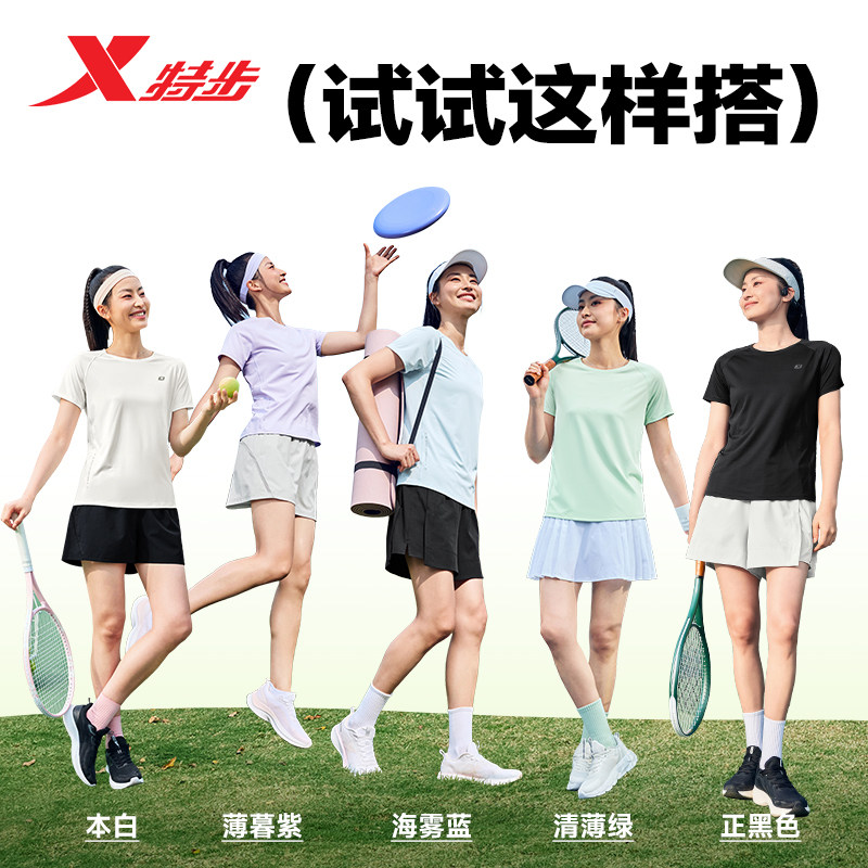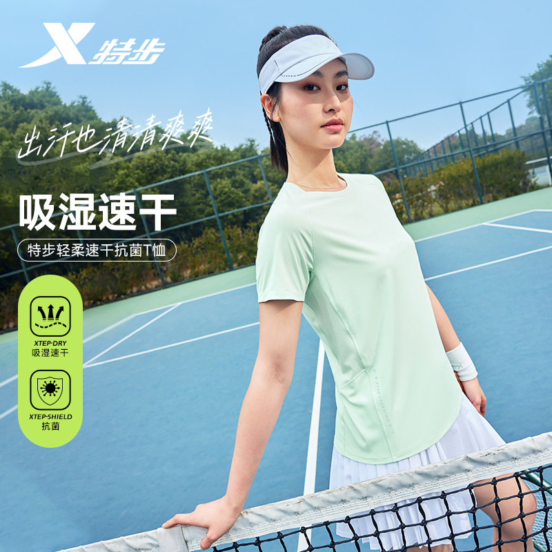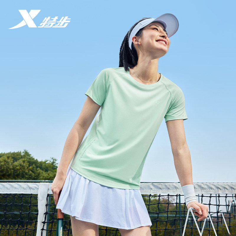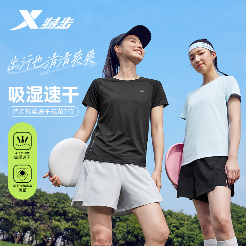 特步短袖T恤女新款夏季官方正品休闲运动服女装健身体恤速干半袖