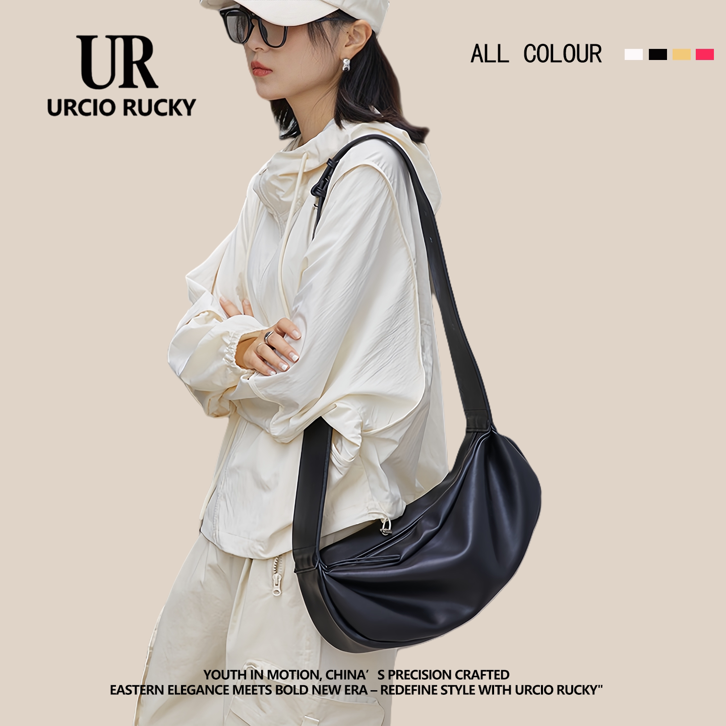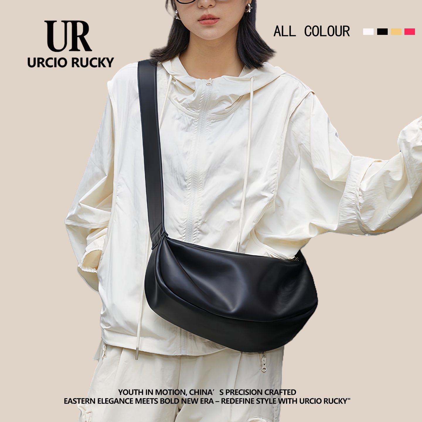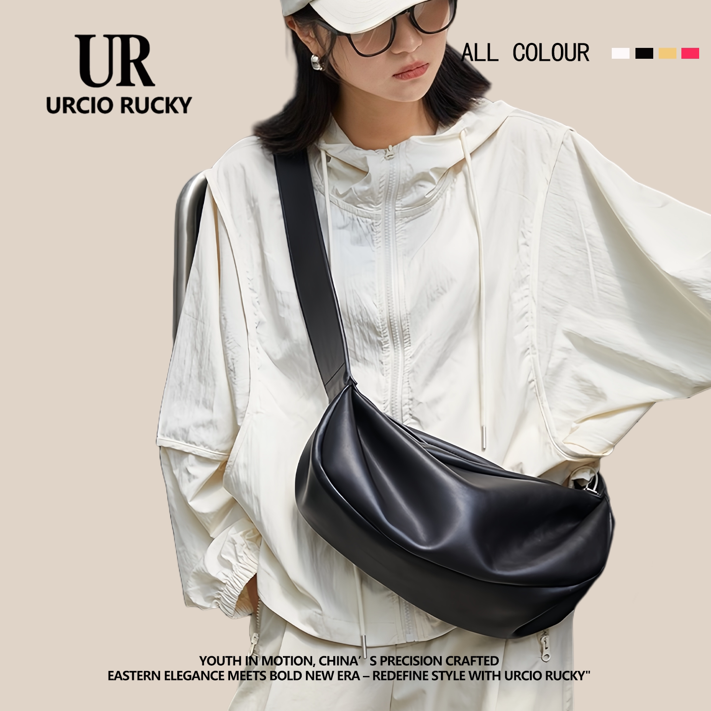 URCIO RUCKY品牌斜挎包宽肩带休闲女包2025新百搭小众软皮饺子包