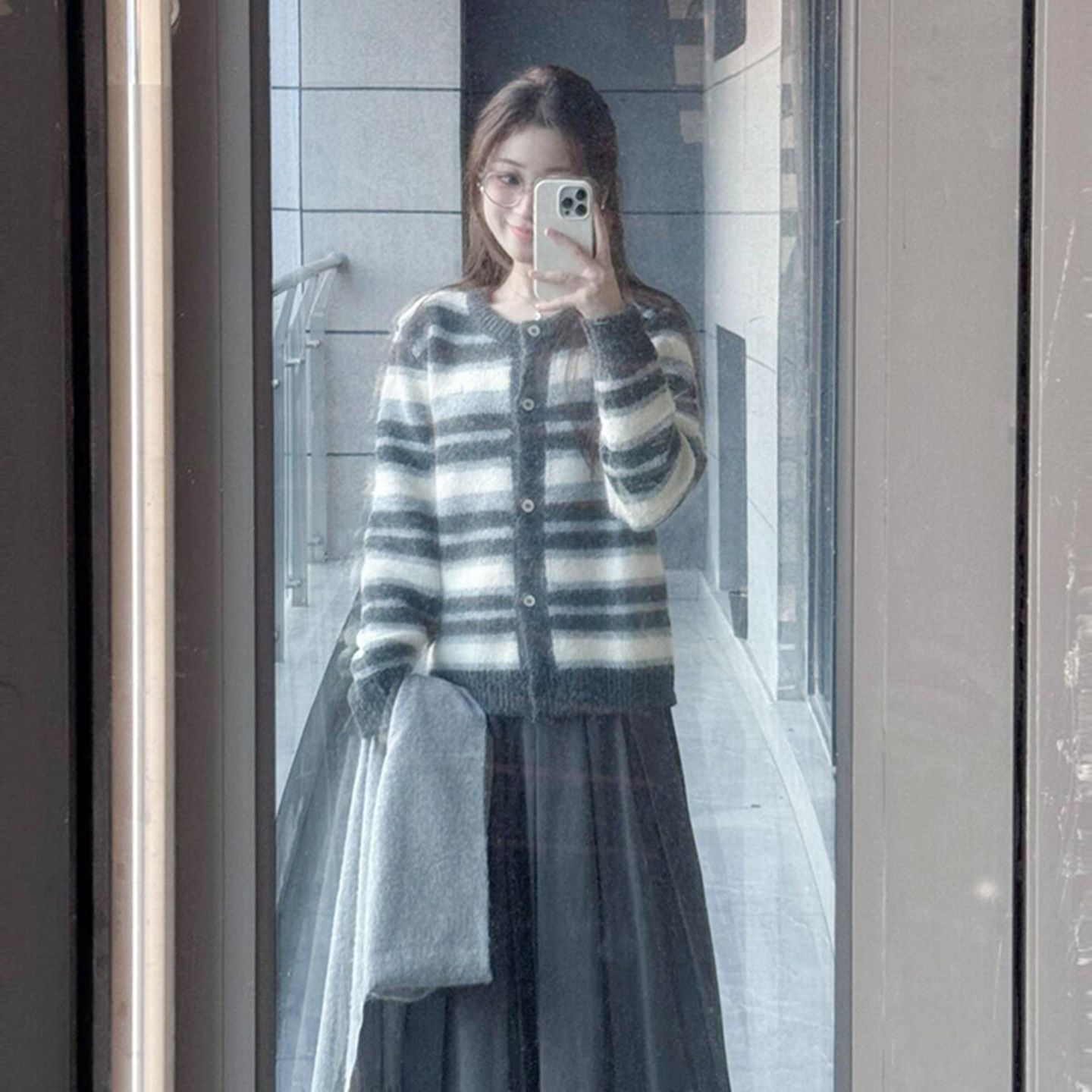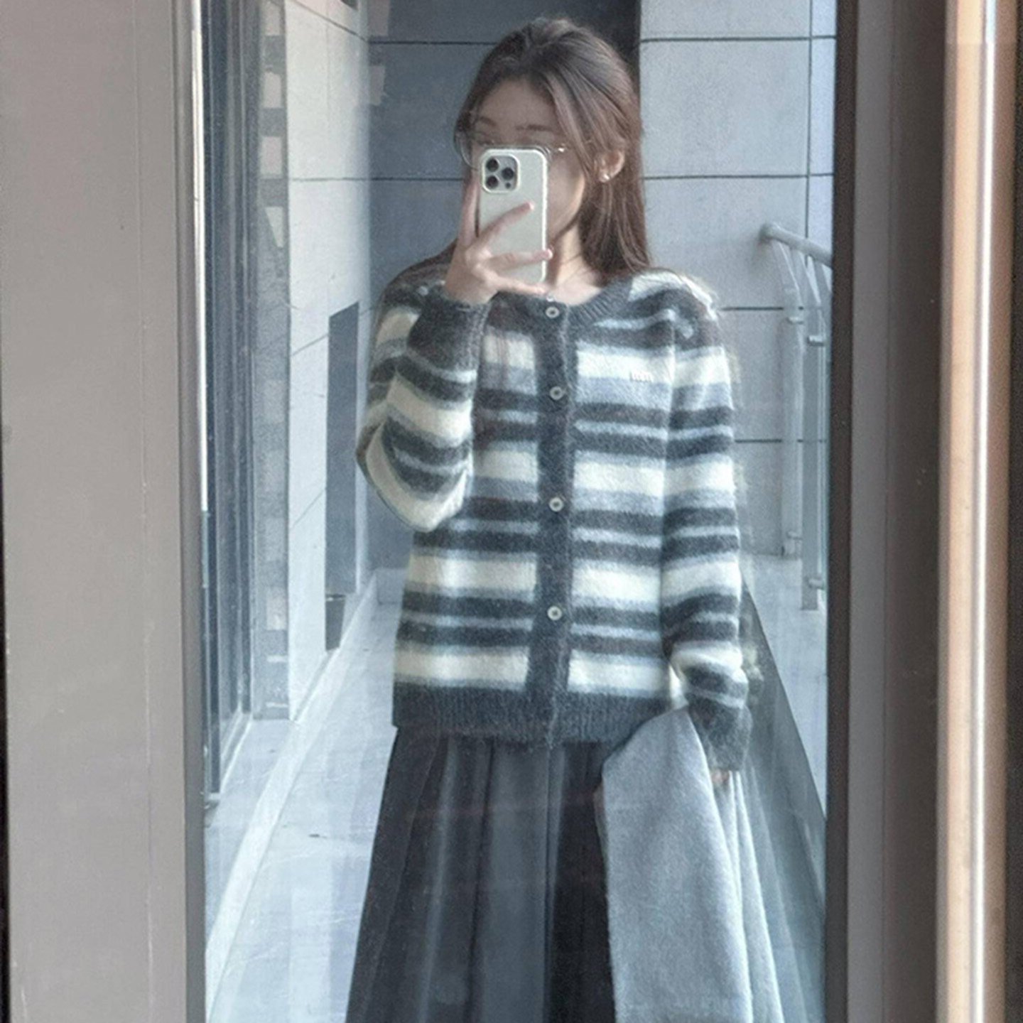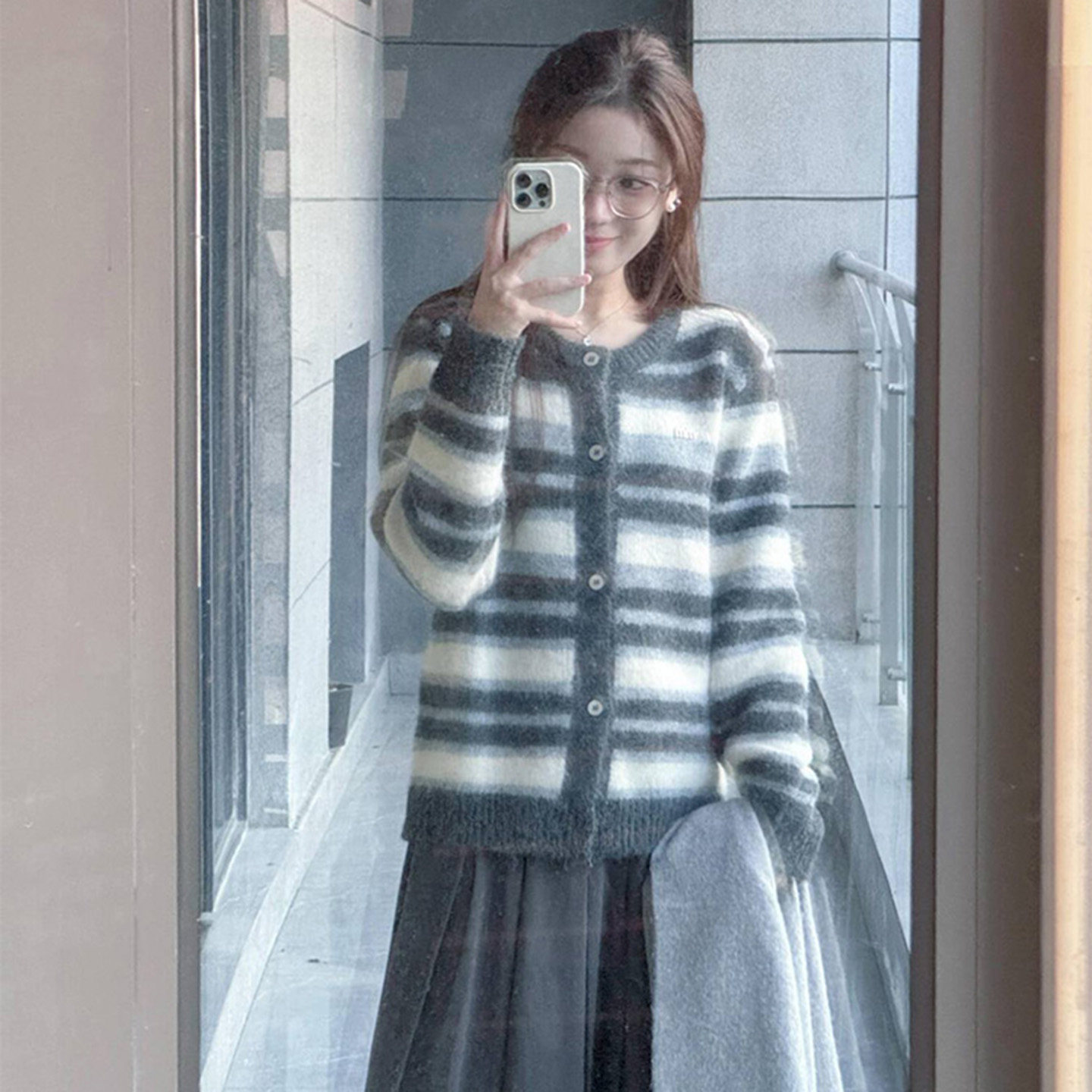 韩系撞色加厚条纹毛衣外套女秋冬季2025新款慵懒风高级感针织开衫