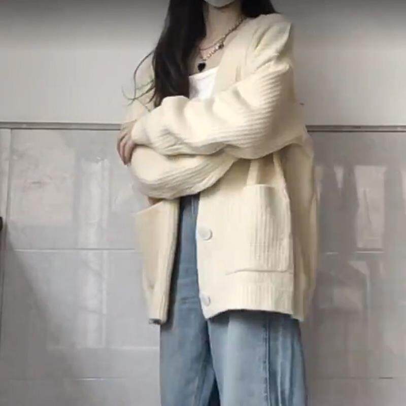加厚毛衣女秋冬季2024新款韩系高级感上衣宽松慵懒风针织开衫外套