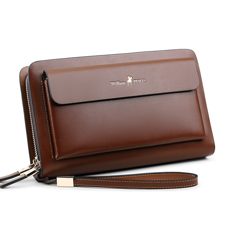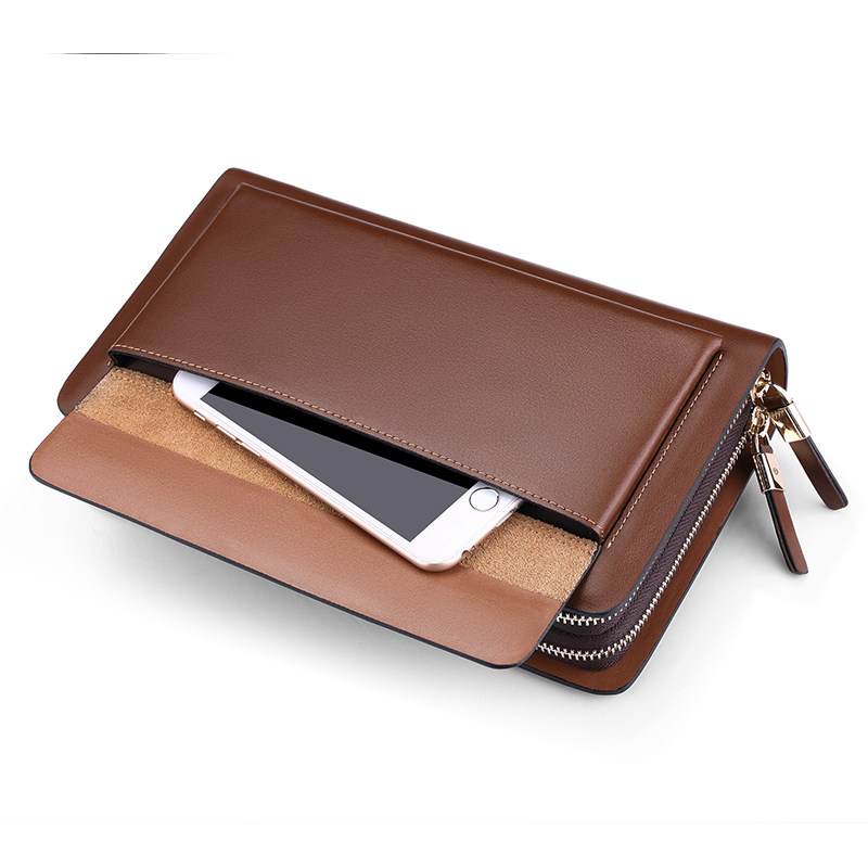 保罗真皮手包手拿包超大容量长款男士钱包纯牛皮双拉链商务手抓包