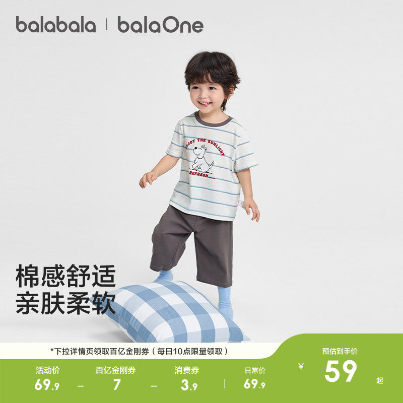 巴拉巴拉儿童睡衣套装春夏薄款空调服男女童家居服小童中大童速干