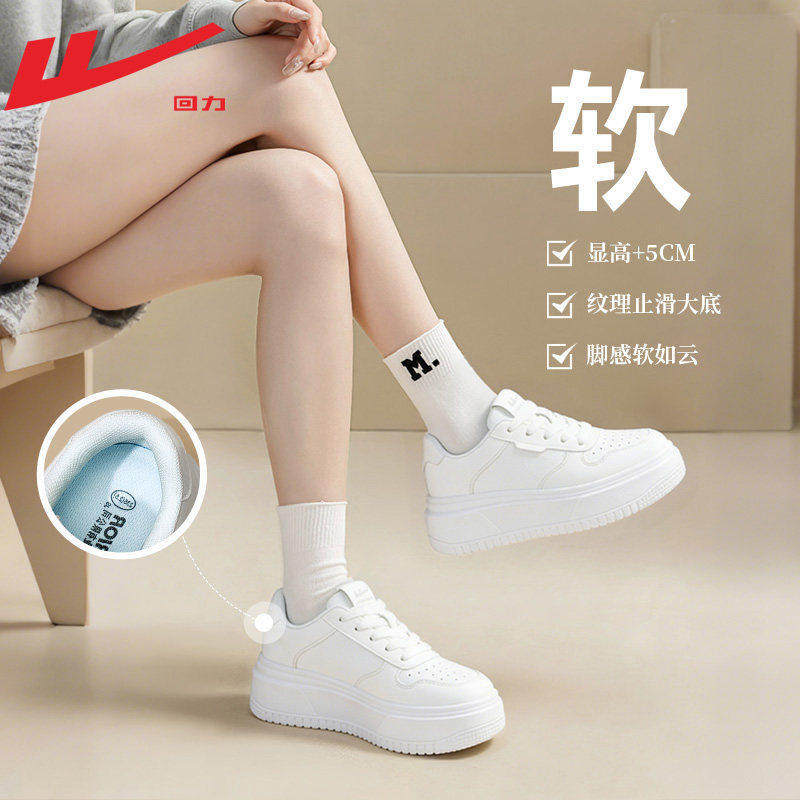 回力小白鞋女款厚底增高5cm小个子白色女鞋轻便软底防滑休闲板鞋