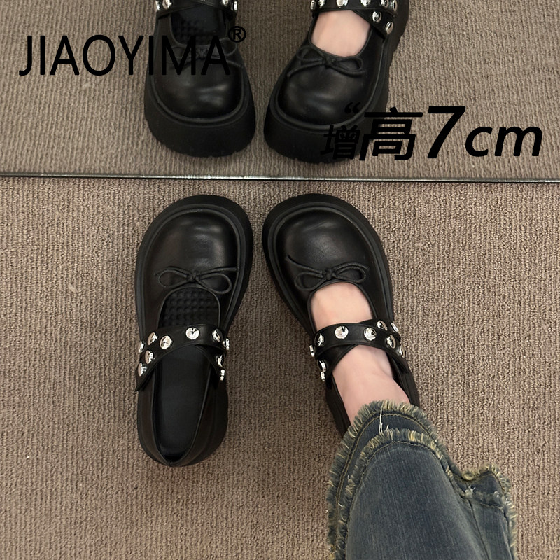 厚底增高玛丽珍女鞋2026新款春季配裙子百搭蝴蝶结波点浅口单鞋