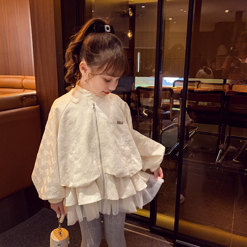 女童春装2026新款洋气儿童小香风网红公主上衣小女孩网纱拼接外套