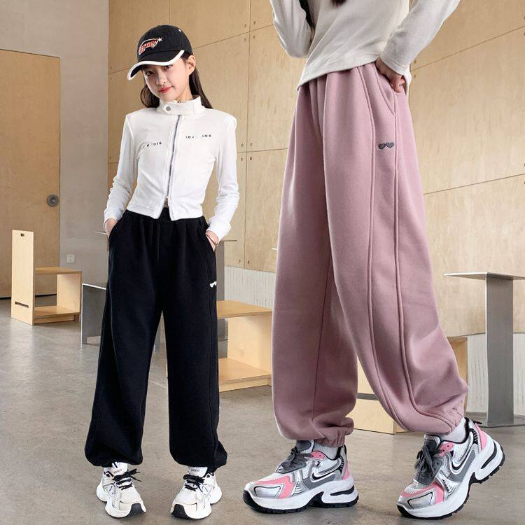 女童裤子春秋款2026新款儿童早春一体加绒纯棉中大童春季运动卫裤
