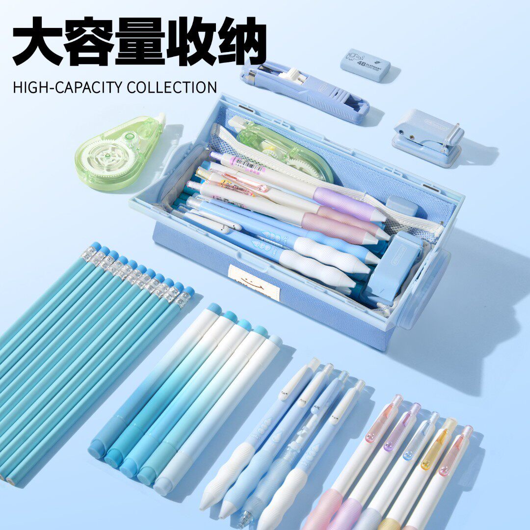 NBX巨能装齿轮笔袋大容量半透明可视可折叠收纳开学文具开学