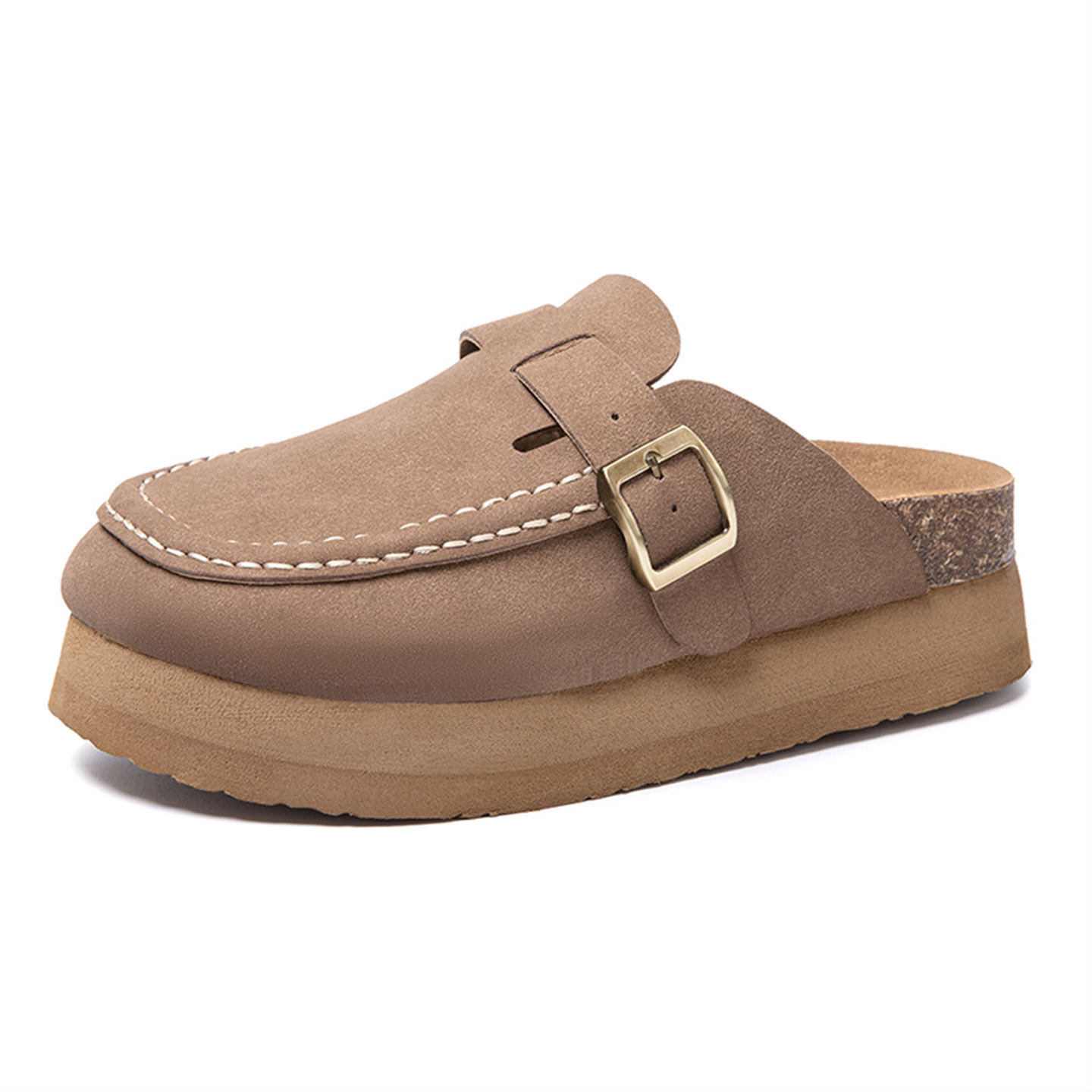 真皮勃肯鞋女2026新款春夏季内增高小码鞋厚底半拖鞋懒人包头凉拖