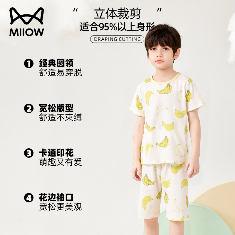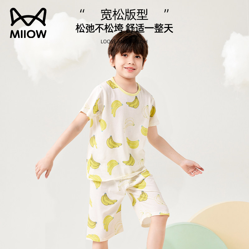 猫人儿童家居服a类纯棉男童夏季薄款短袖女孩宝宝睡衣套装空调服