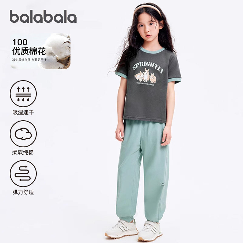 巴拉巴拉女童短袖套装大童纯棉运动t恤儿童休闲两件套夏装新款潮5