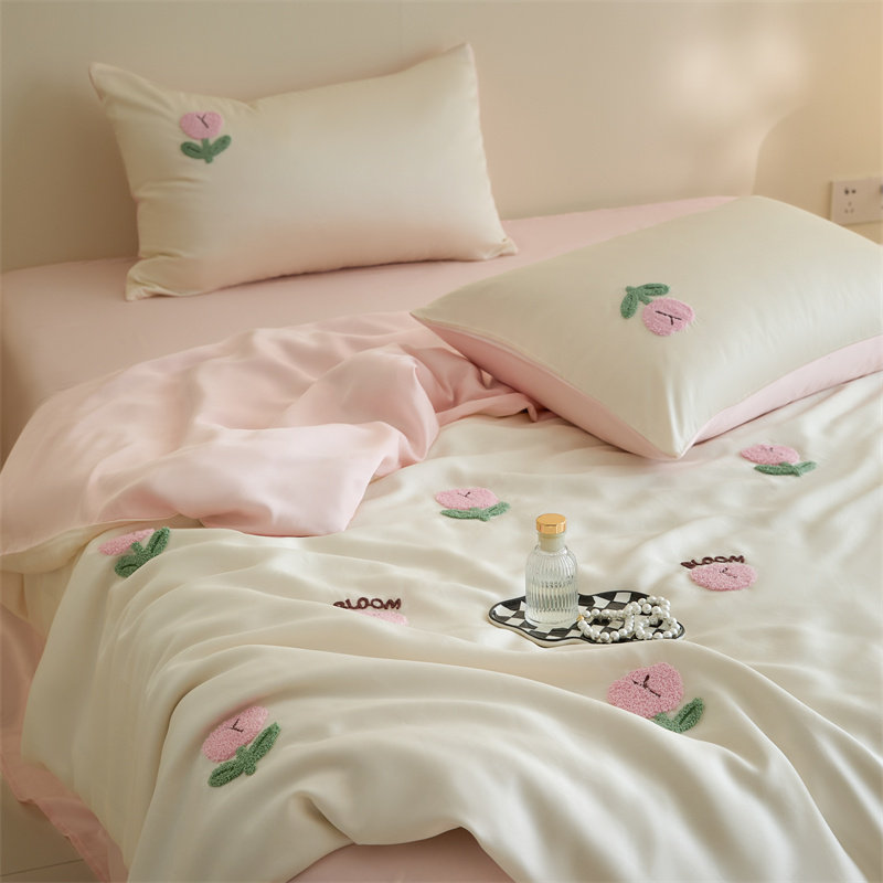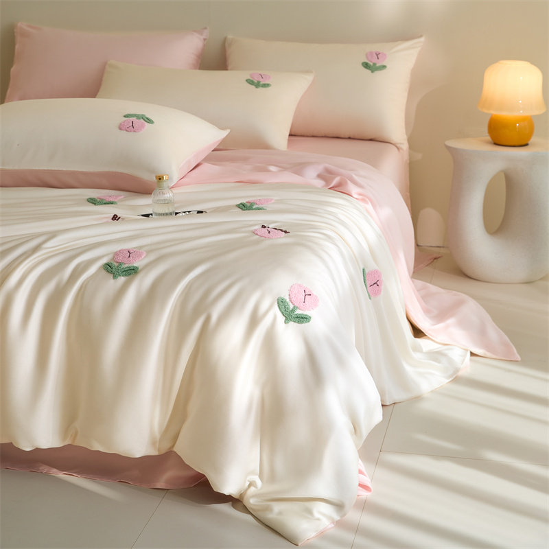 床上用品冰丝四件套2025新款夏季水洗真丝床笠床单被套宿舍三件套