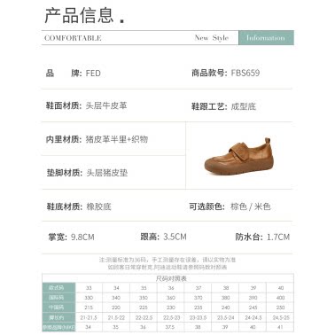 【头层牛皮】秋季女鞋真皮圆头厚底魔术贴休闲单鞋乐福鞋勃肯鞋女