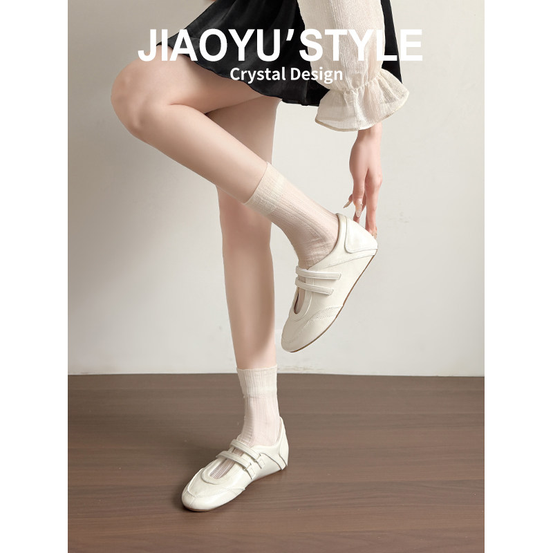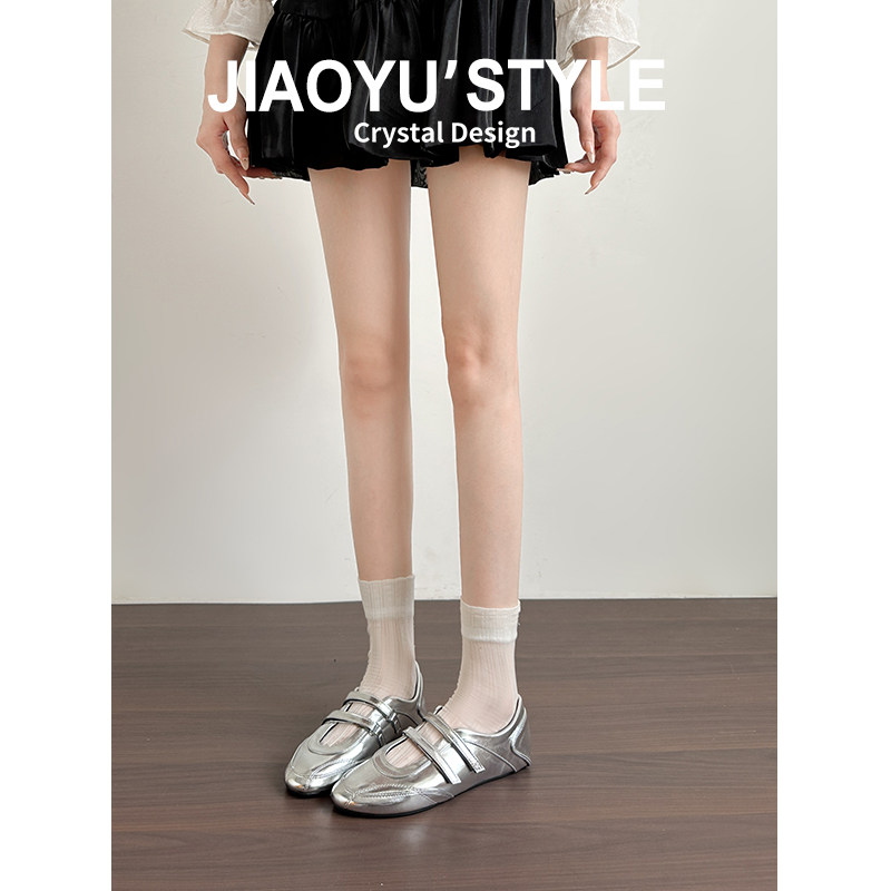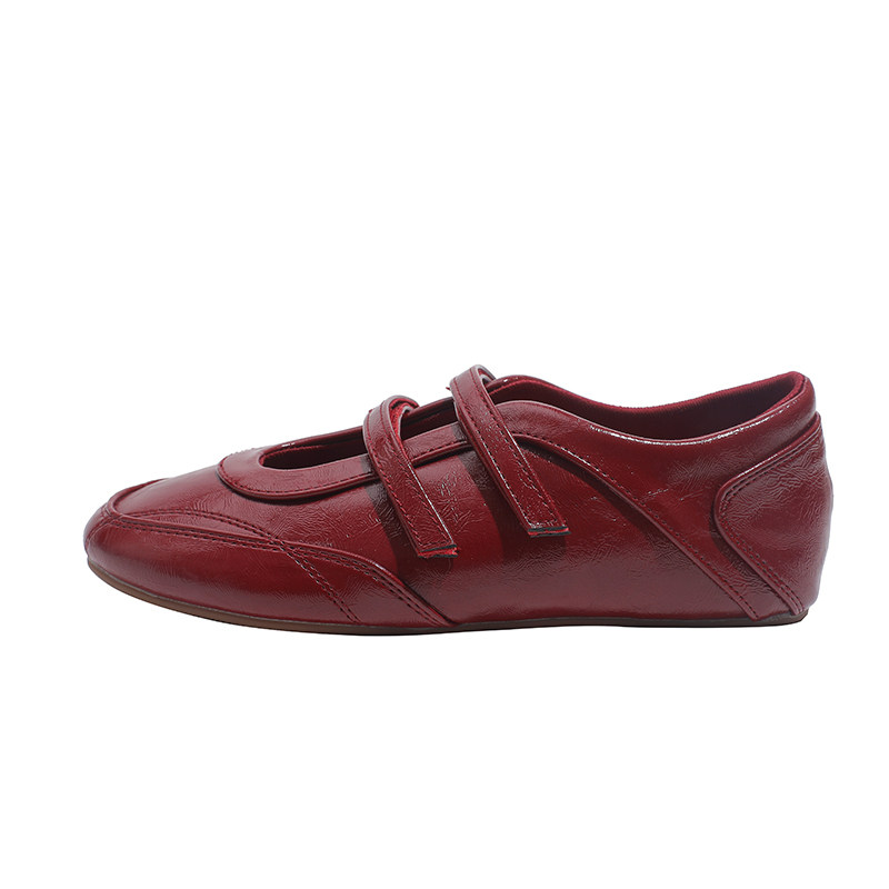 真皮~骄屿 红色玛丽珍运动鞋女内增高德训鞋芭蕾单鞋百搭休闲鞋子