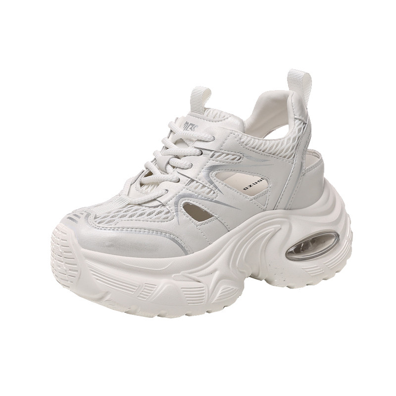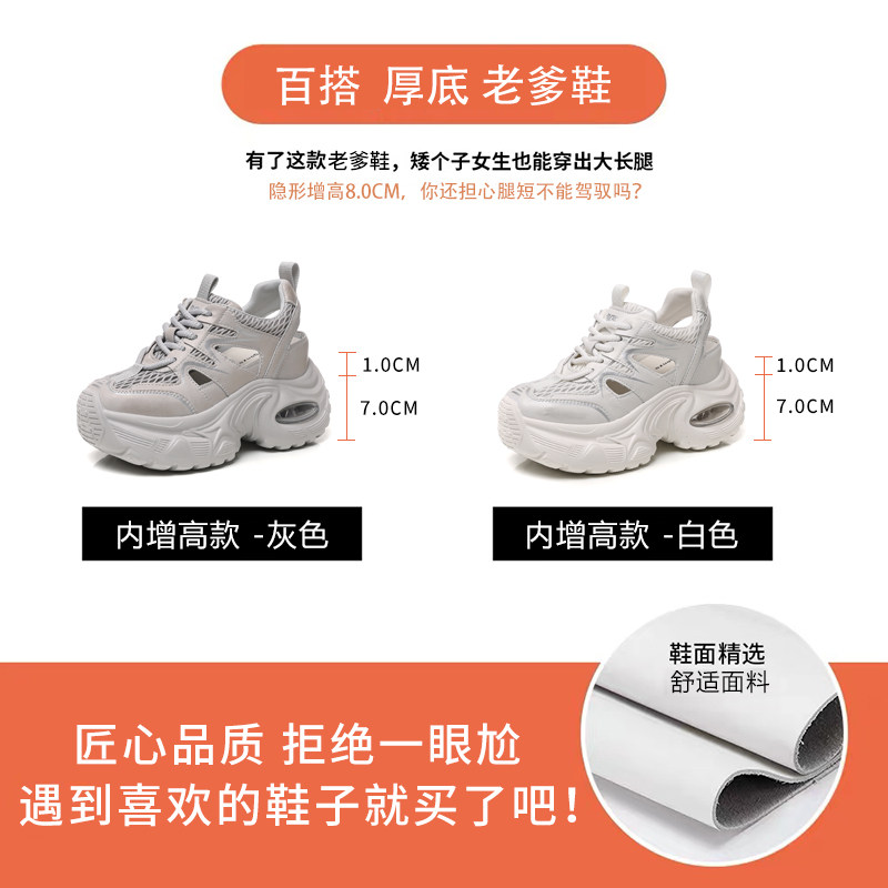 内增高8CM镂空网面透气老爹凉鞋女2026新款夏季薄款厚底运动休闲