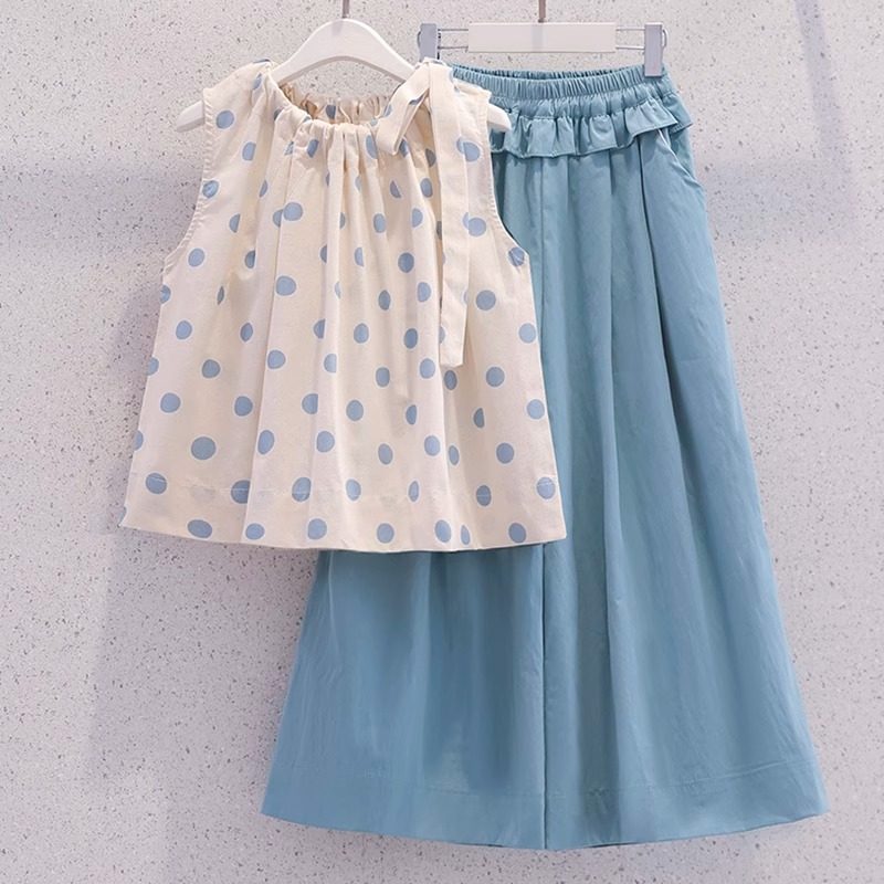 女童波点无袖娃娃衫套装夏季网红炸街儿童大童裙裤子夏装休闲衣服